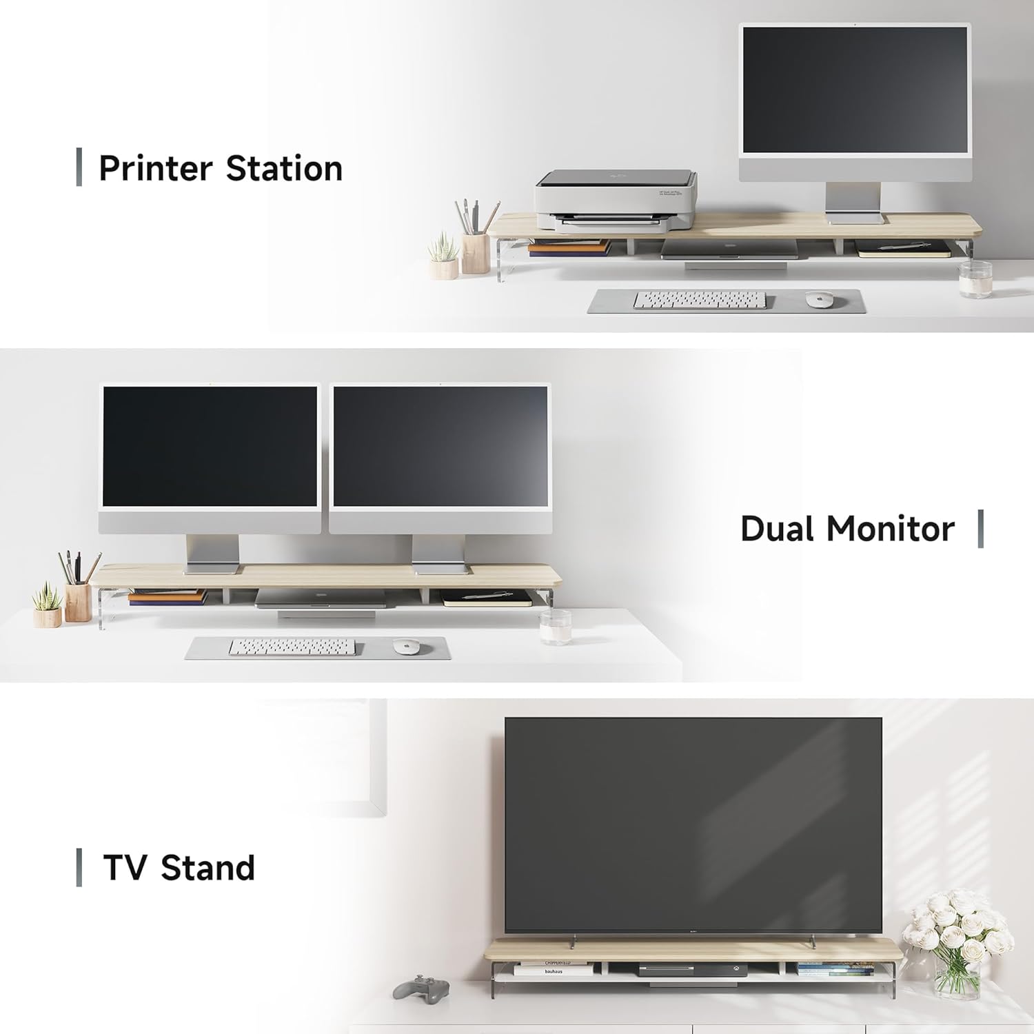 Fenge Acrylic Monitor Stand Riser, 42.5 Inches Dual Monitor Stand with Metal Storage, 2 Tier Acrylic Computer Riser for Desk, Clear Laptop Stand for PC, Laptop, Printer, TV, Oak