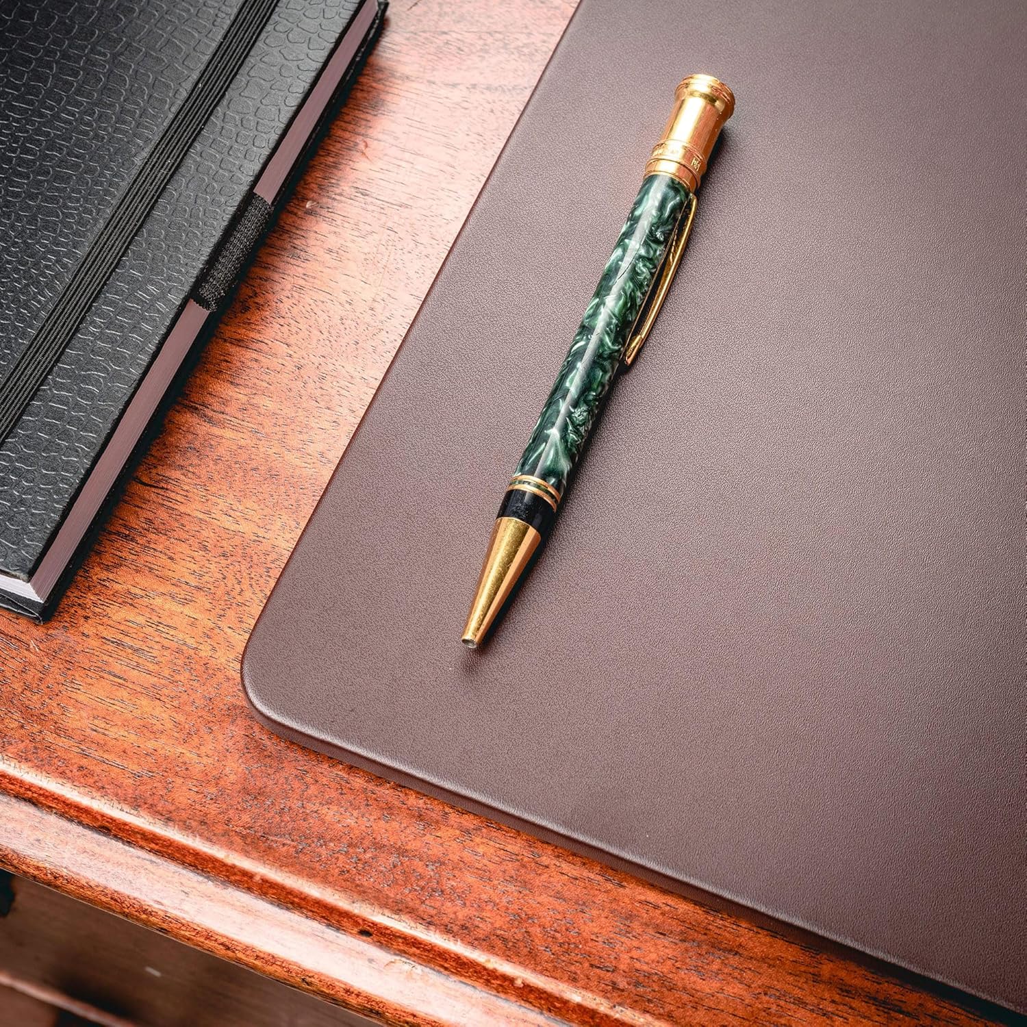 - DIMENSIONS: This brown leatherette desk mat measures 20" x 16" x 0.25".