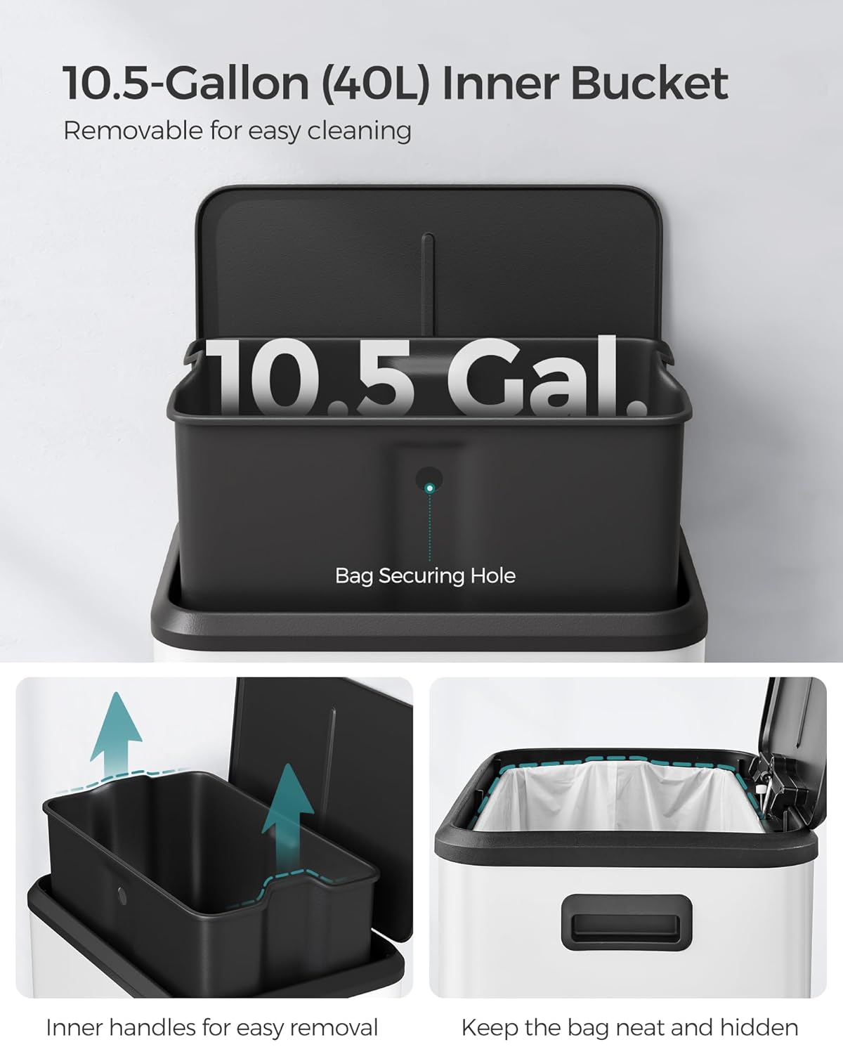 - [Practical Inner Bucket] Equipped with handles, the inner bucket can be removed for easy cleaning and liner change. Moreover, the bag hole at the back not only secures the bag in place but also keeps it hidden from view