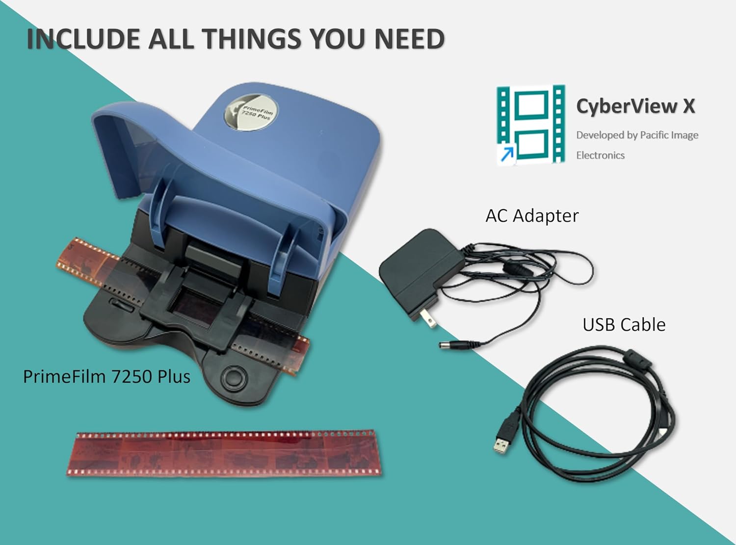 Pacific Image PrimeFilm 7250 Plus Film Scanner 35mm or 135 Film Slide and Negative Scanners, 7,200 dpi 48-bit True Color 3.9 Dynamic Range Mac/Pc, Support Mac and Windows