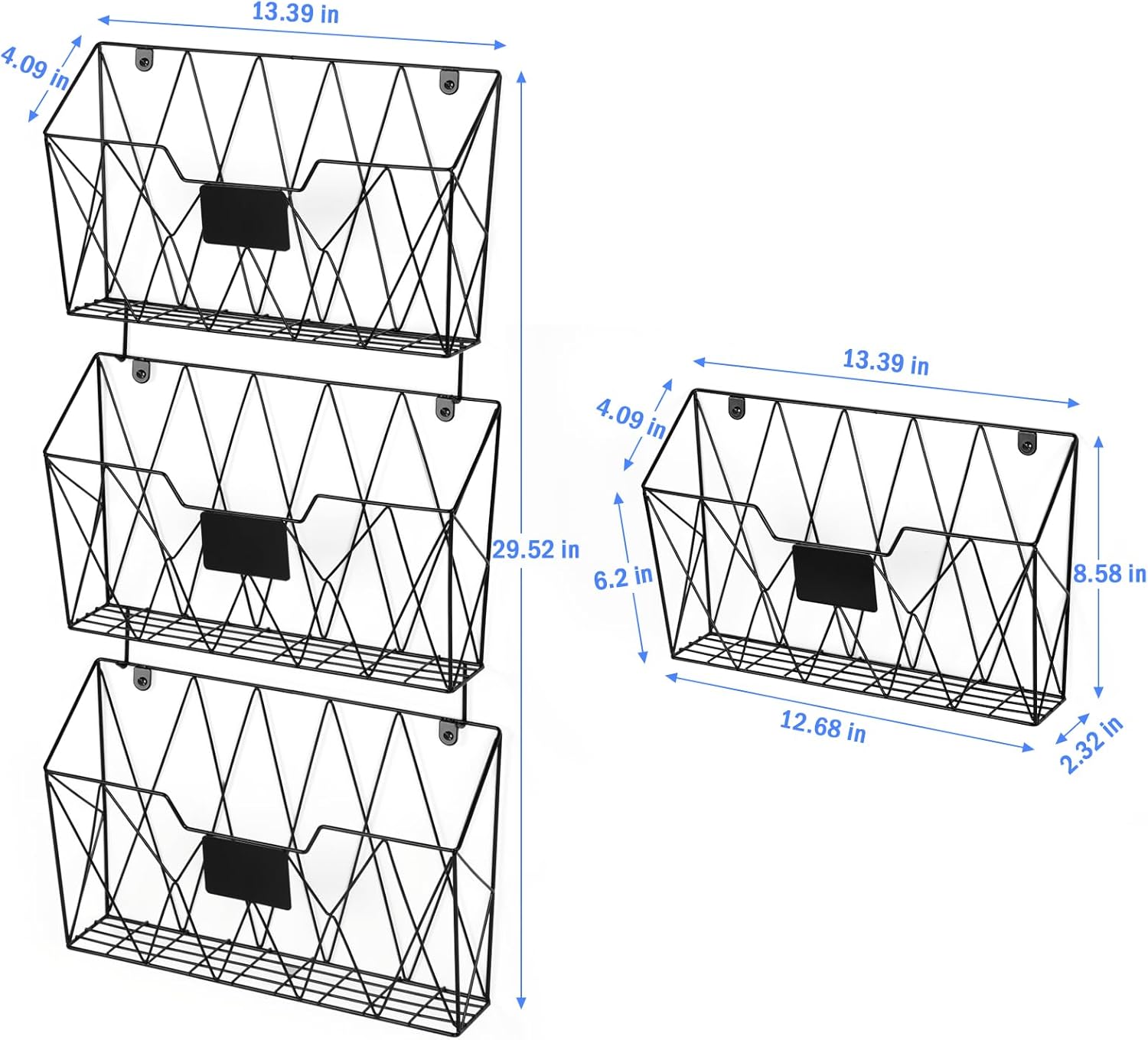 - 【Easy to Install】The metal wall file organizer comes with mounting hardware that can be easy to install, no assembly required. You can stack the three wall baskets together or separately to install a office hanging organizer according to your needs to organize your magazines and important documents.