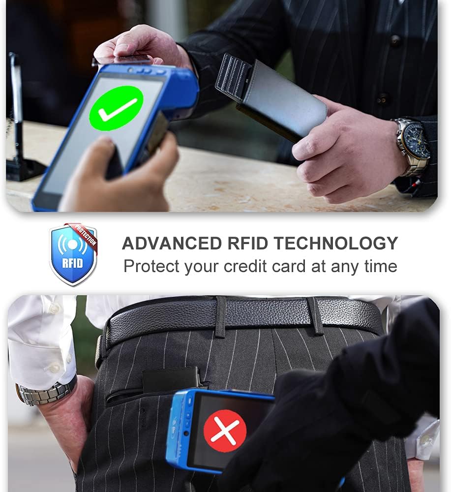 - [Magnetic Closure]-Cartera wallet card holder is made of high-grade aluminum alloy box + high-grade leather, With 4pcs Strong Magnets, better than normal card holder, so that the card holder will not open when closed,edge Wallet Cartera de Hombre.The ultra-thin wallet is designed to fit directly in the pocket for easy carrying, and the leather wallet can be used to store cash.