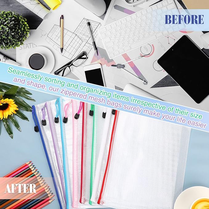 - Wide Application: the waterproof pouch is essential for home, classroom, office, and travel uses, which can help organize books, bills, photos, cosmetics, loose puzzles, and games with absolute ease; Seamlessly sorting and organizing items irrespective of their size and shape, our zippered mesh bags surely make your life easier