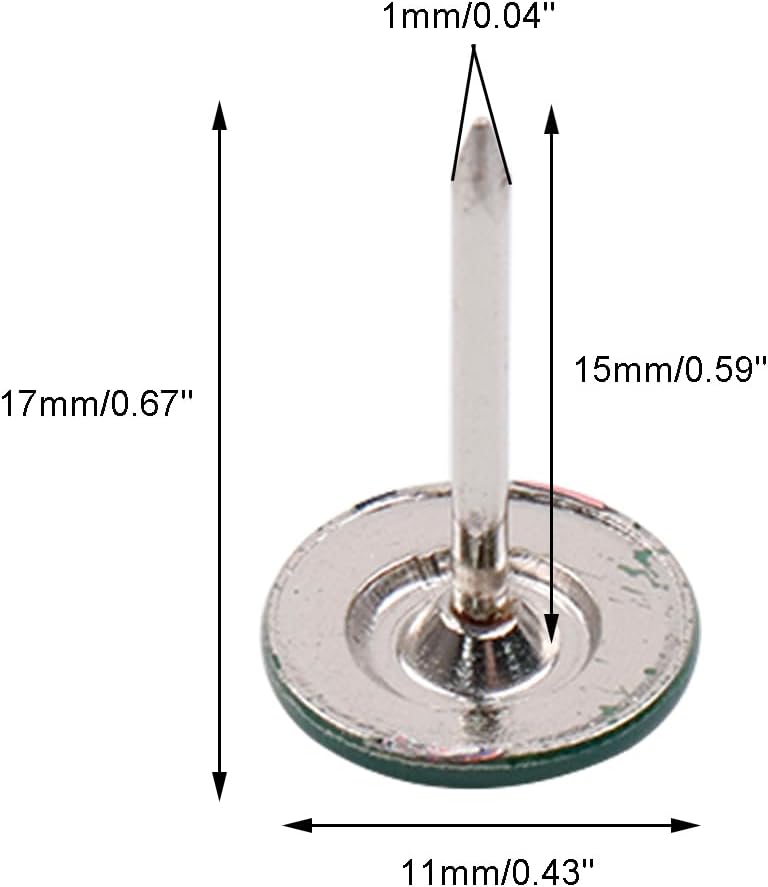 - PACKAGE CONTENT: 100Pcs green flat head upholstery tacks, enough quantity to meet your daily needs. Total Size:11mm*17mm/ 0.43" * 0.67"(Dia.xH), elegant for furniture decoration