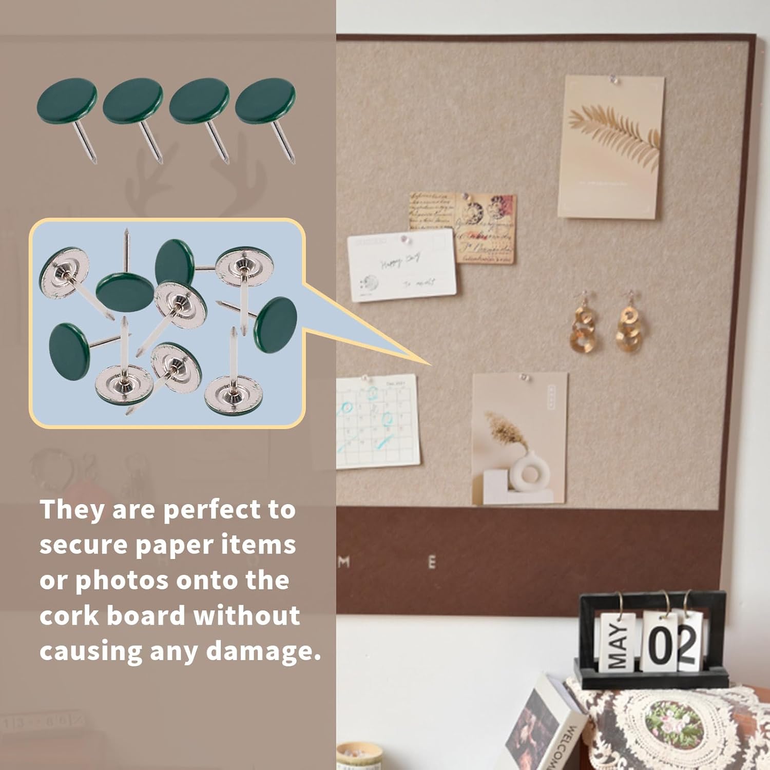 - QUALITY SERVICE: The upholstery tack is ideal for attaching paper items or photos to the cork board. If you have any questions about flat head thumb tacks, please feel free to contact us and we will try our best to help you