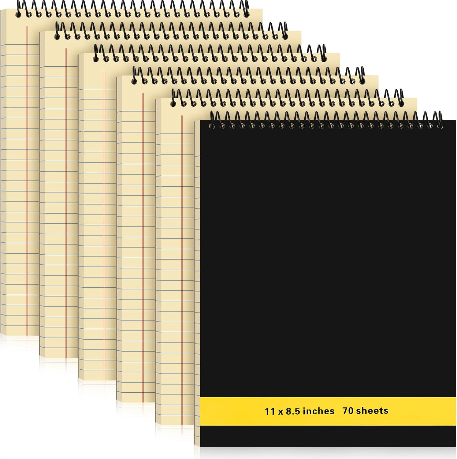 6 Pcs Legal Pad Top Spiral Bound Notebook 70 Sheets Wirebound Notepad Double Sided Ruled Memo Steno Pad with Stiff Back Cover for Business(8.5 x 11 Inches,No Holes,Yellow)