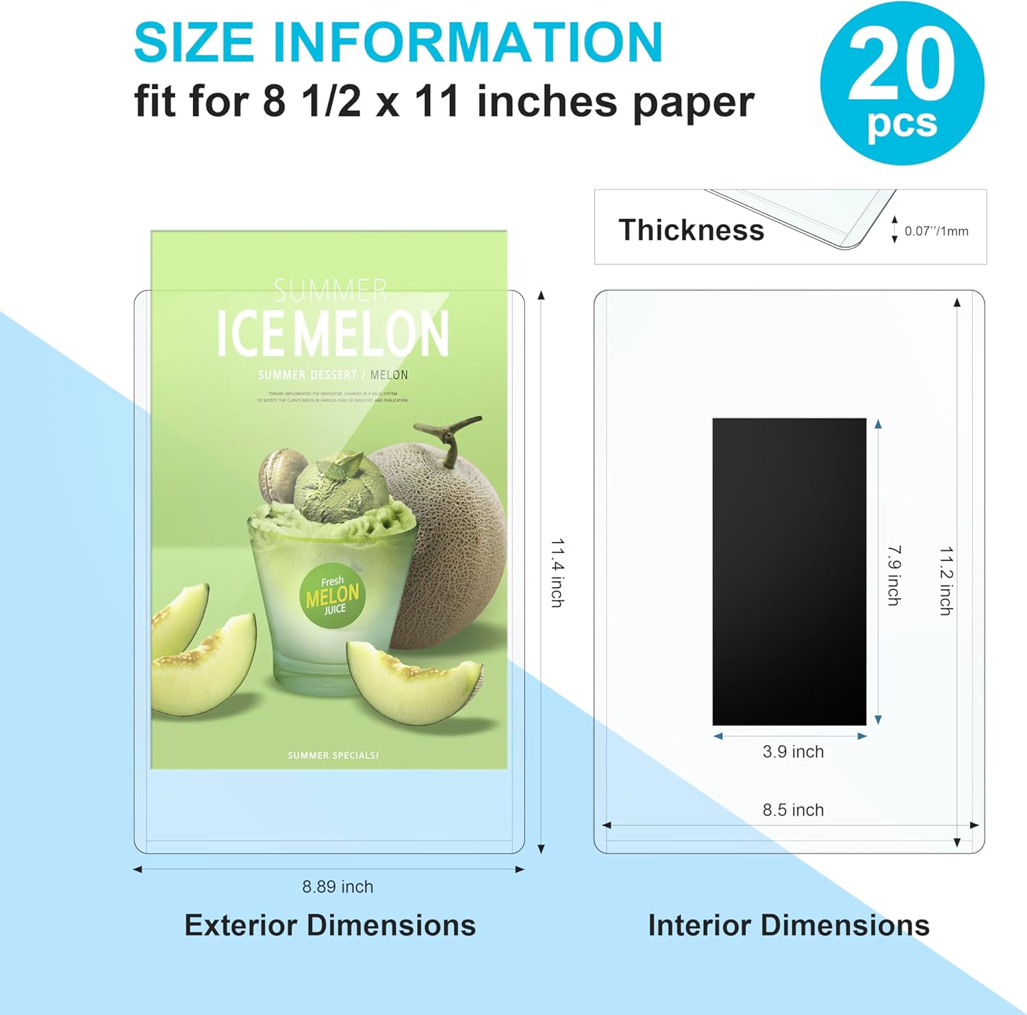- LARGE AREA MAGNETIC APPEAL: 20-pack magnetic file holder set, fits 8 1/2 x 11 inch paper, can also be used as a magnetic photo frame for storage cabinet/refrigerator, display your favorite photos for your daily use and Replacement needs, they come with 1x 3.9 x 7.9 inches/10 x 20 cm soft magnetic, so you can secure them to metal iron surfaces; please note that it can only attract objects containing iron and cannot be fixed to other on metal.