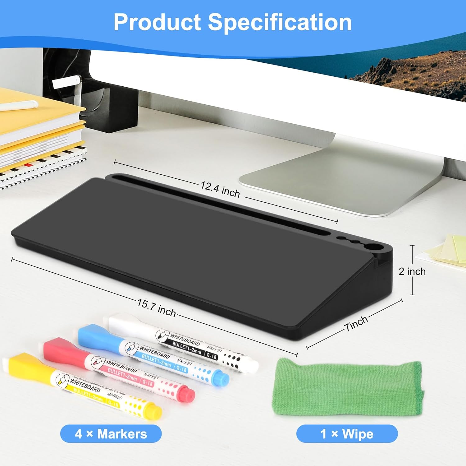 - Compact Size for Desk - Sitting compactly between your computer and keyboard, this small glass whiteboard can maximizes your workspace. The dimension of the product is 15.7 x 7 x 2 inches, which make it as a valuable addition to office. At the same time, it can enhance office organization and efficiency.