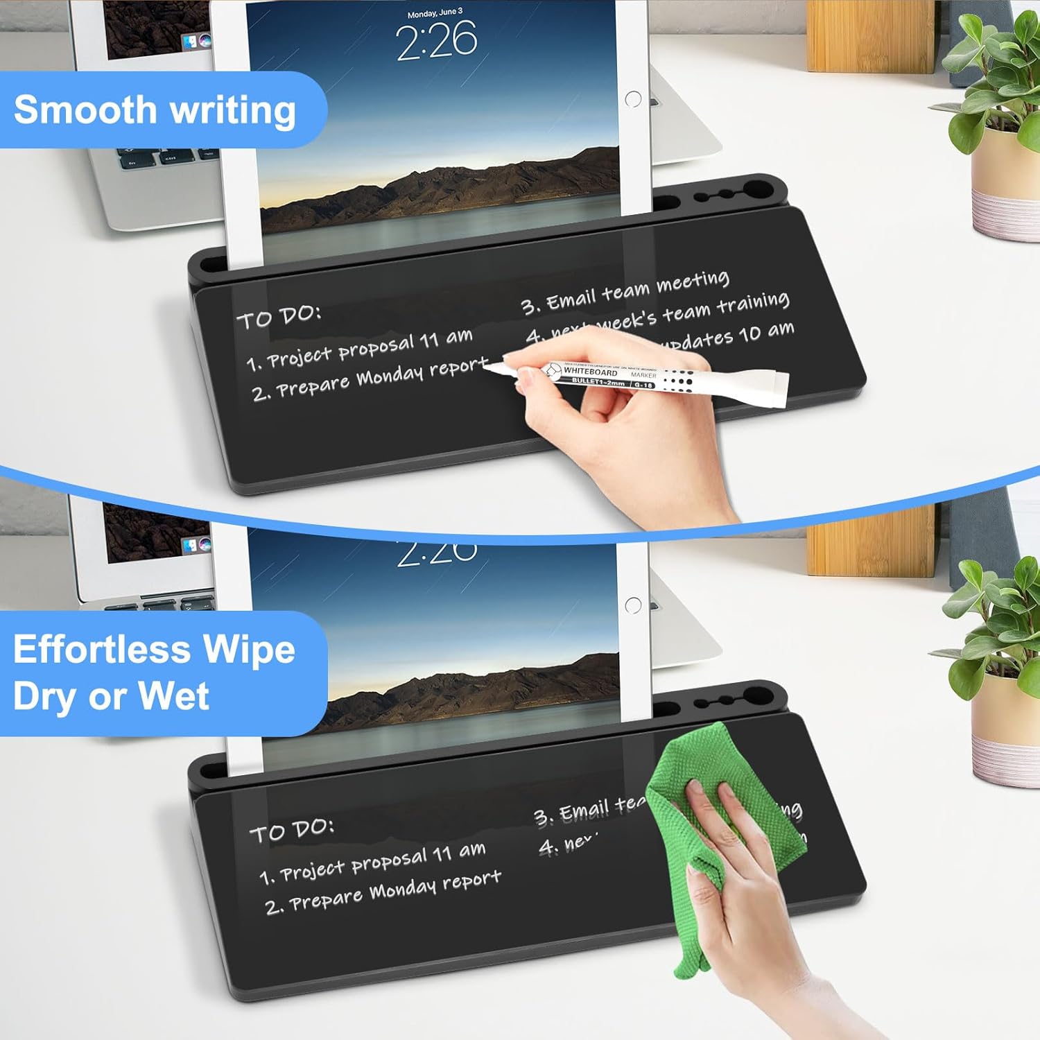 - Smooth Writing and Erasing - The white board is made of high-quality glass, you can write smoothly and erase cleanly, without scratches and residues. Eliminating the need for post-it notes and memo, you can be more convenient to write down to-dos, reminders and brainstorm ideas during work, meeting and phone calls.