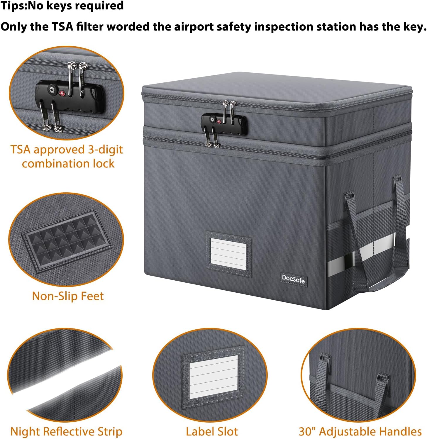 - Innovative Design: Compared to other materials used in boxes which tend to itch and stick to dust,the Dust-proof material we use prevents dust from sticking to the outside of our file box,always keep it neat and tidy.The reflective strip design allows you to immediately find your box even at night,protecting files and valuables from fire.Fireproof document box uses different boards than other box,High quality PP boards won't warp.It can collapses down simply for easier storage when not in use.