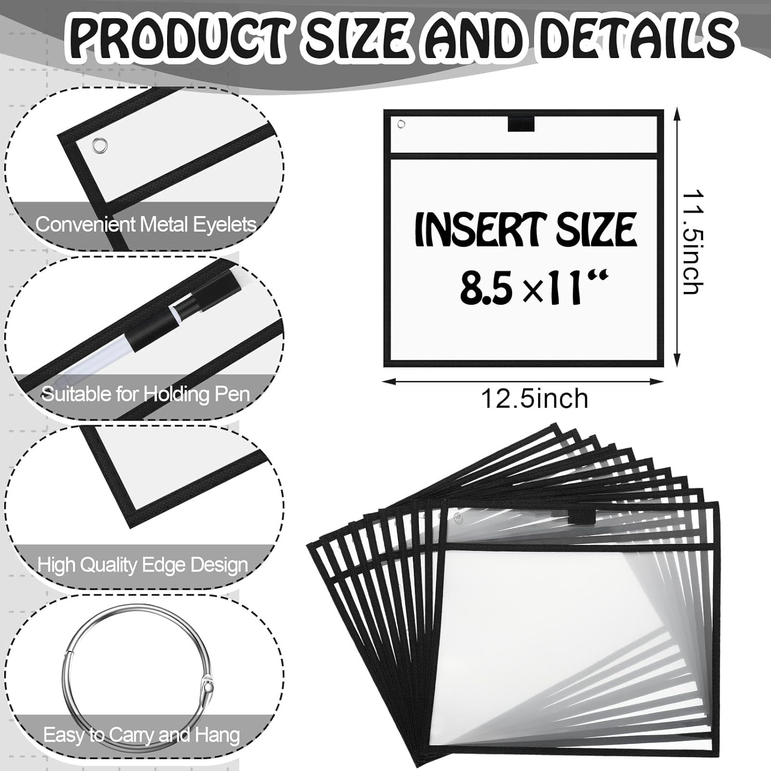 - What You Will Get: you will get 150 pieces of dry erase pockets in black and 3 hook rings, these dry erase pockets are sufficient to meet your various applying needs, and you can share them with your colleagues educators and friends