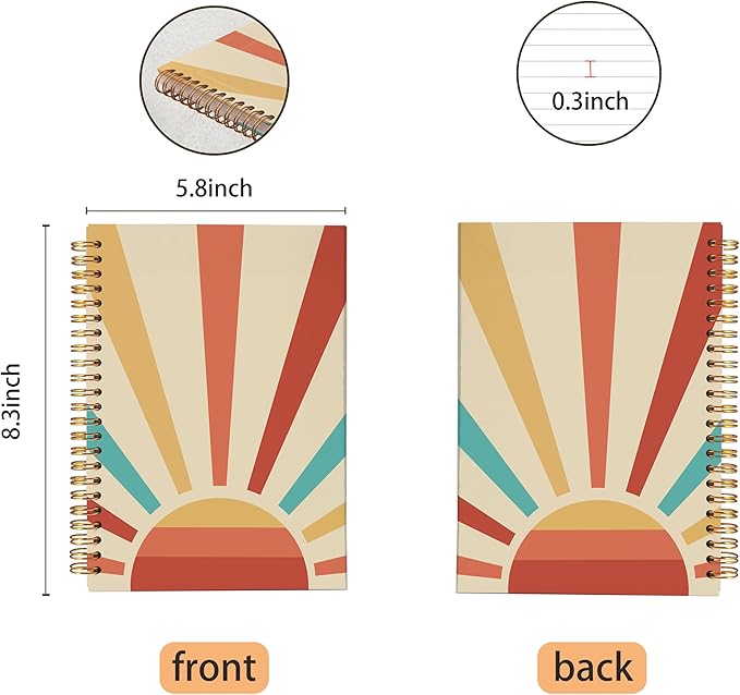 VNWEK Retro Groovy Boho Notebook - Boho Journal, Boho Gifts for Women, Boho Office Supplies, Vintage Boho Sun Sunshine Spiral Notebook 5.5x8.3,Writing Notebooks