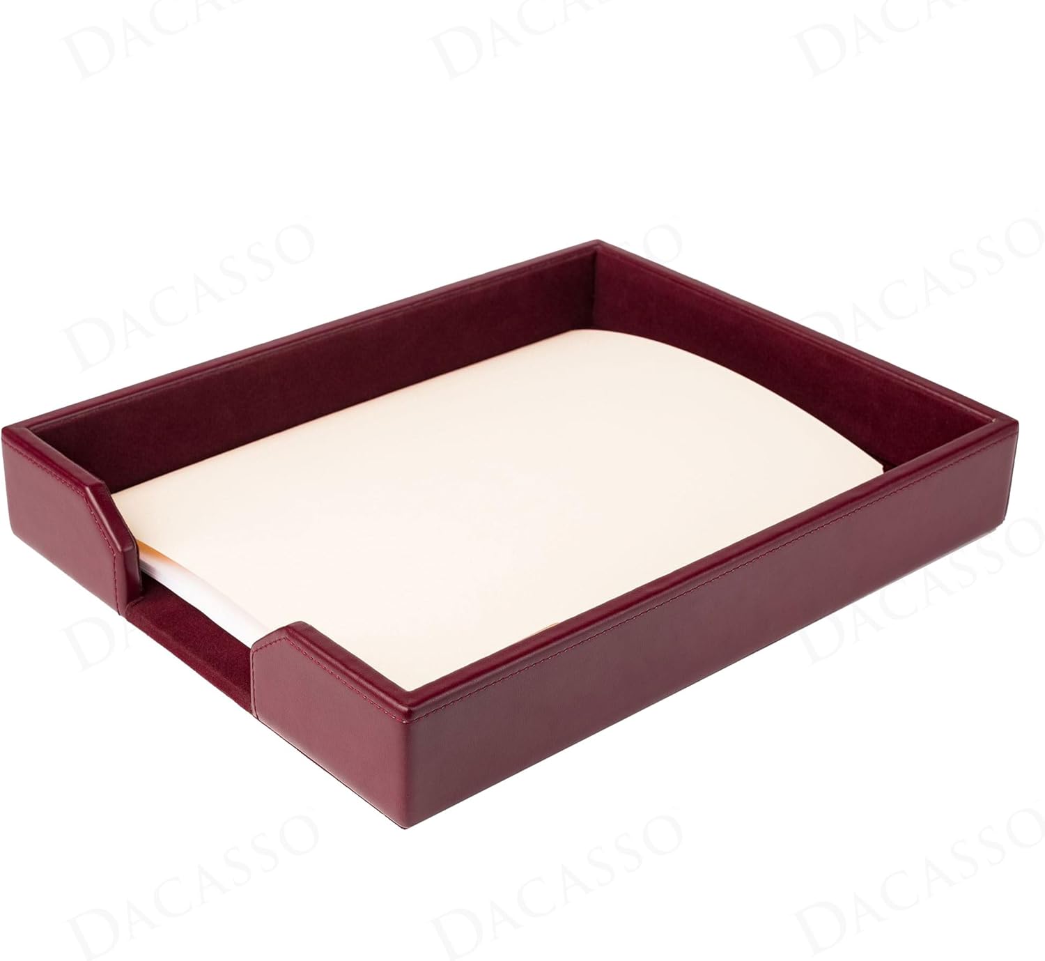 Dacasso Burgundy Bonded Leather Luxury Letter Tray Holder & Paper Organizer for Desk - Executive Desk Decor & Office Organization Essential