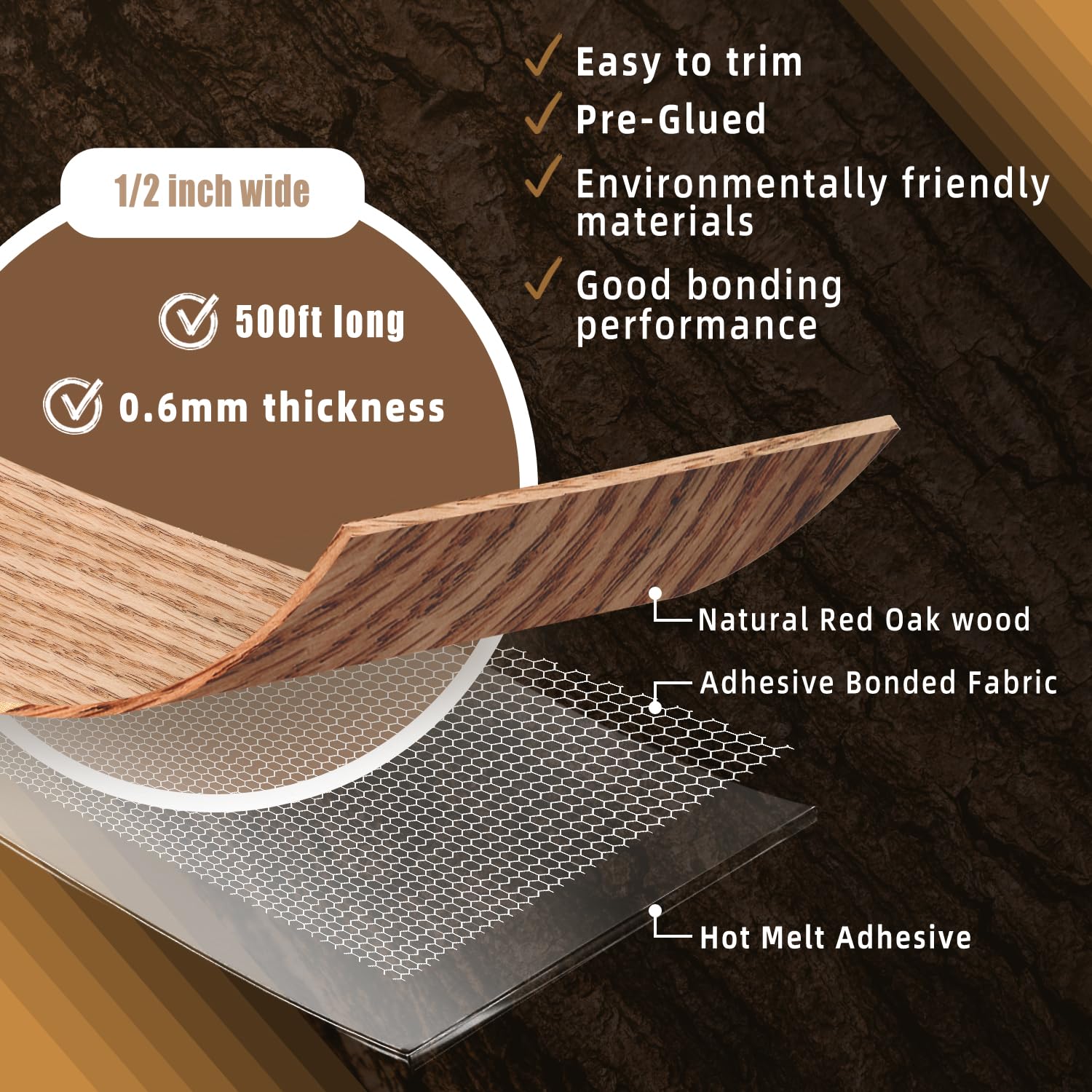 - √【HIGH QUALITY】- The edge banding is made of high quality real wood material, which is durable and elastic, with a smooth surface and not easy to be dirty.When you repair Laminate and Cabinets, Red Oak Edge banding will be your first choice.