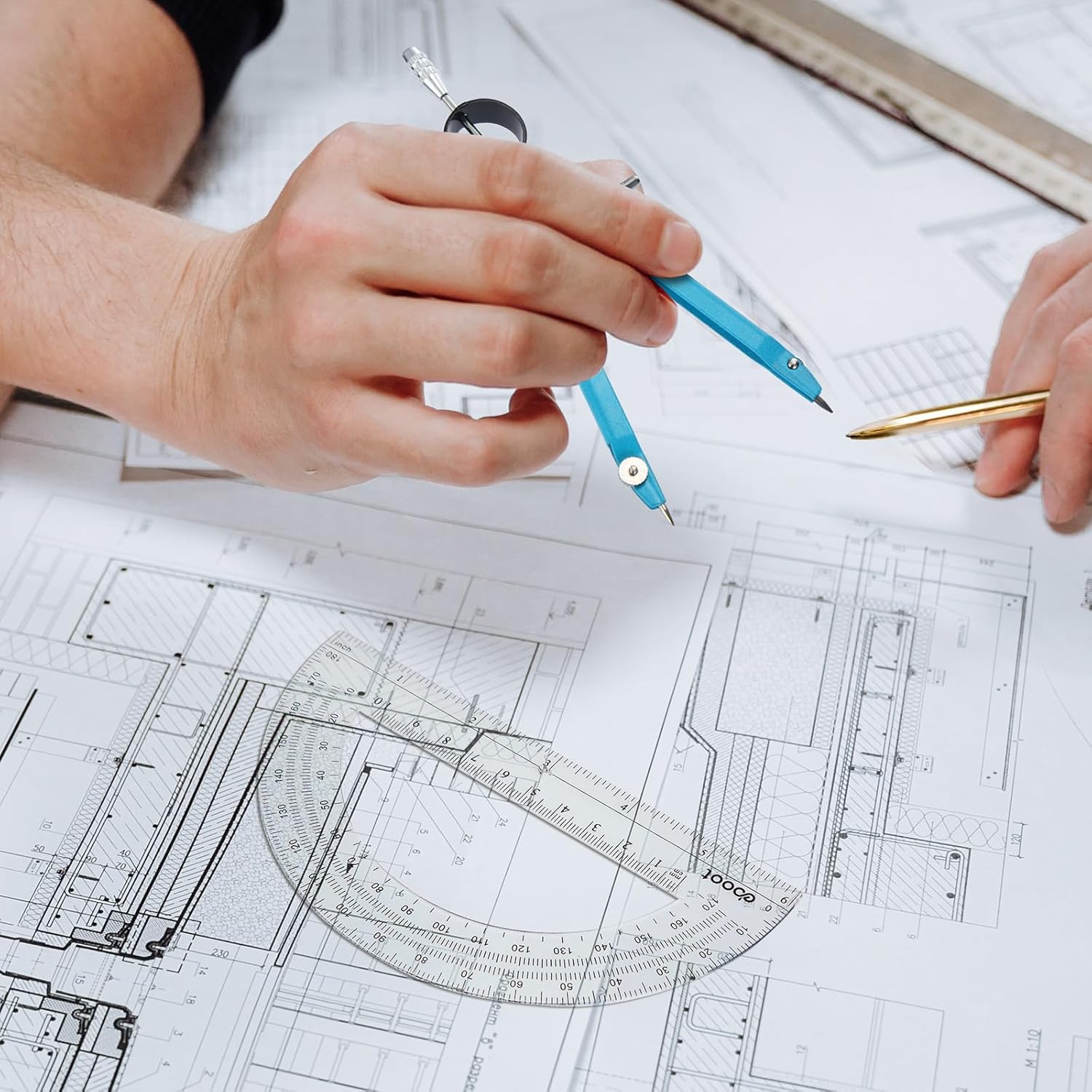 EBOOT Student Geometry Math Set, Drawing Compass and 6 Inch Clear Swing Arm Protractors 180 Degree Math Protractor (Sky Blue)
