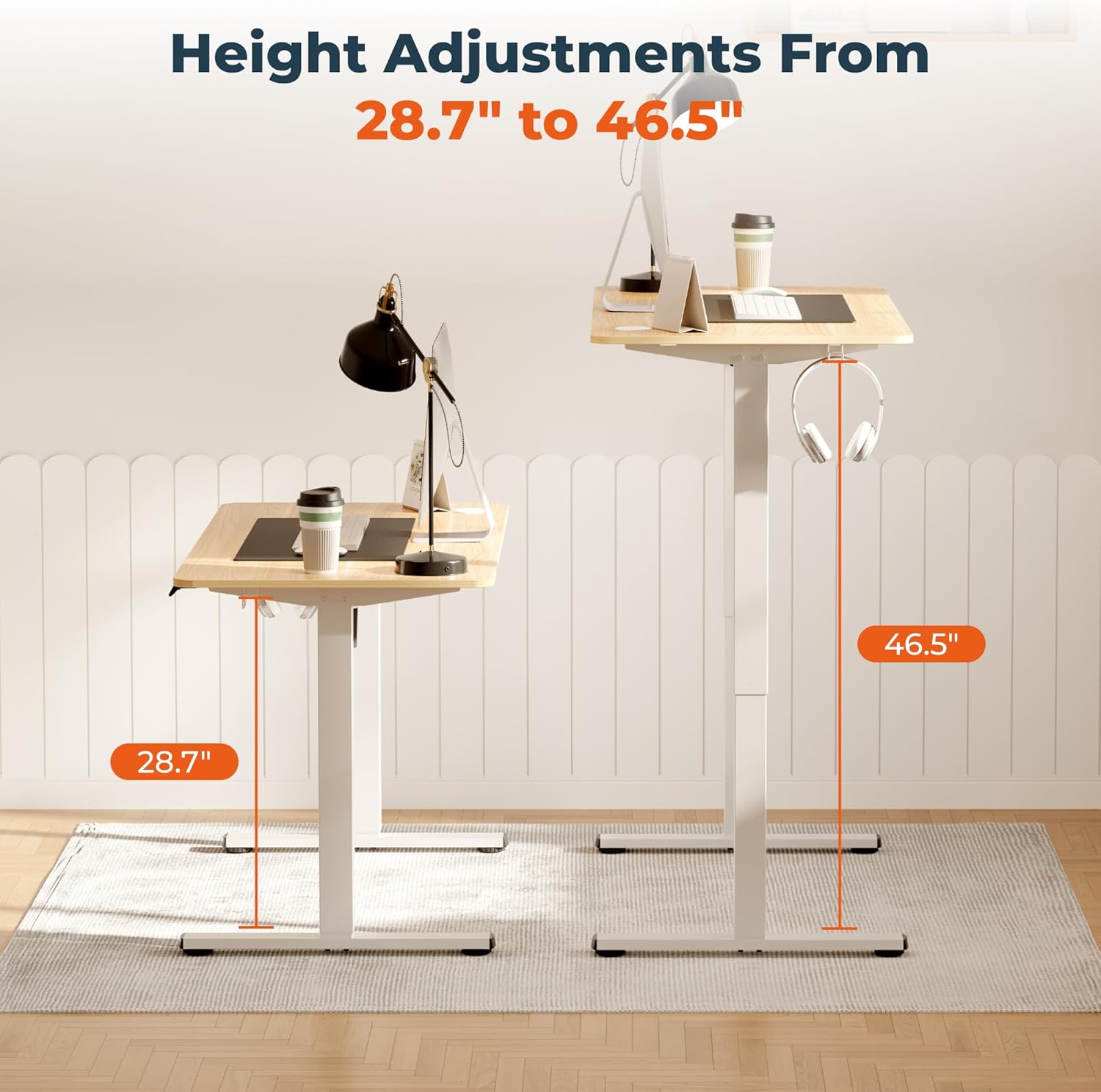 Adjustable Stand Up Desk with Memory Preset,Electric Standing Desk 47 x 24 Inch Home Office Desk Computer Workstation Sit Stand Desk, Splice Maple Top + White Frame
