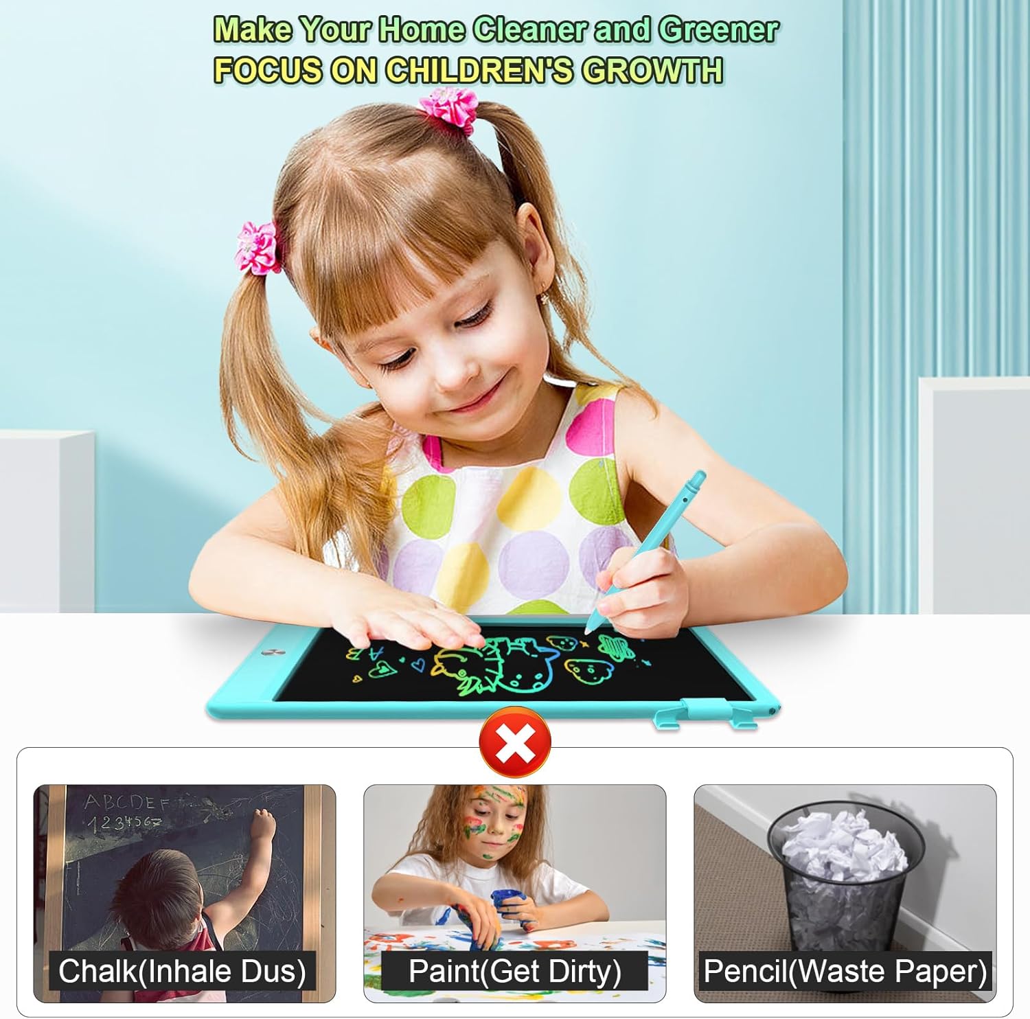 - 🖍️ 【Multi-Functional Screen】Drawing pad for kids adopts advanced pressure-sensing technology, the colors after drawing on it, smooth and Colorful, NO radiation, NO glare, NO blue light. Drawing board is a top-rated gift for Christmas, birthdays.