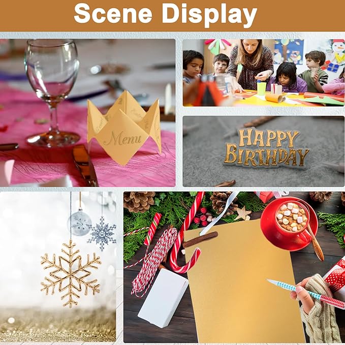 - ▶SHIMMER GOLD CARDSTOCK: Each package includes 120 sheets of Heavyweigh gold cardstock paper, measures 8.5 x 11 inches in size, 1500 grams in weight. Double sided shimmer, acid free and environment friendly