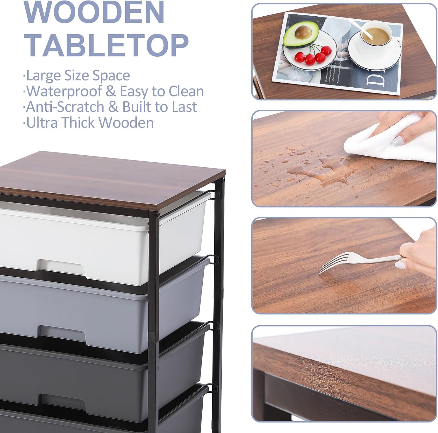 - WOODEN TABLETOP & THICK DRAWERS: Utility cart with drawer boasts a sturdy and durable powder-coated steel frame with water and rust resistance ensures a sturdy construction and built to last.