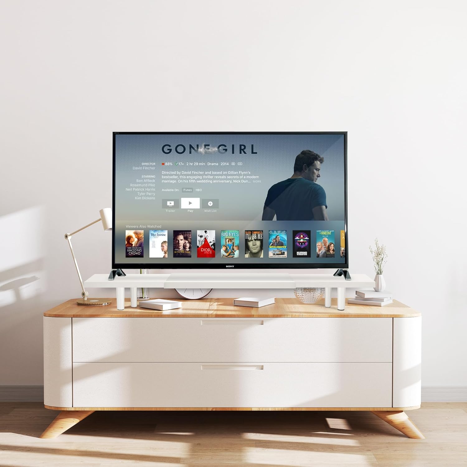 Dual-Monitor-Stand-Riser-For-Desk Adjustable Length 32-40 Inch,Large Desktop Computer Monitor Riser For 2 Screens,Desk Shelf Organizer Riser Stand For Computer/Laptop/PC/Printer/TV White