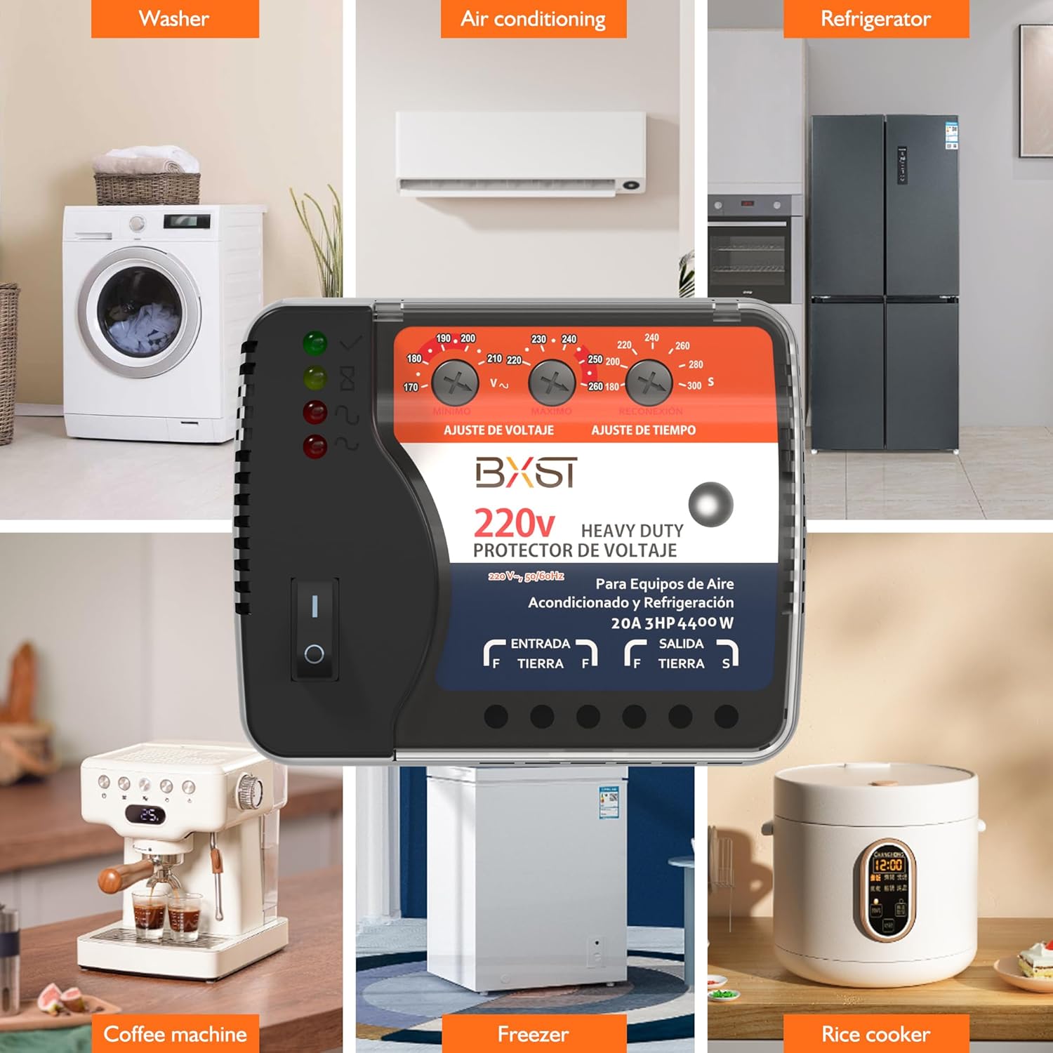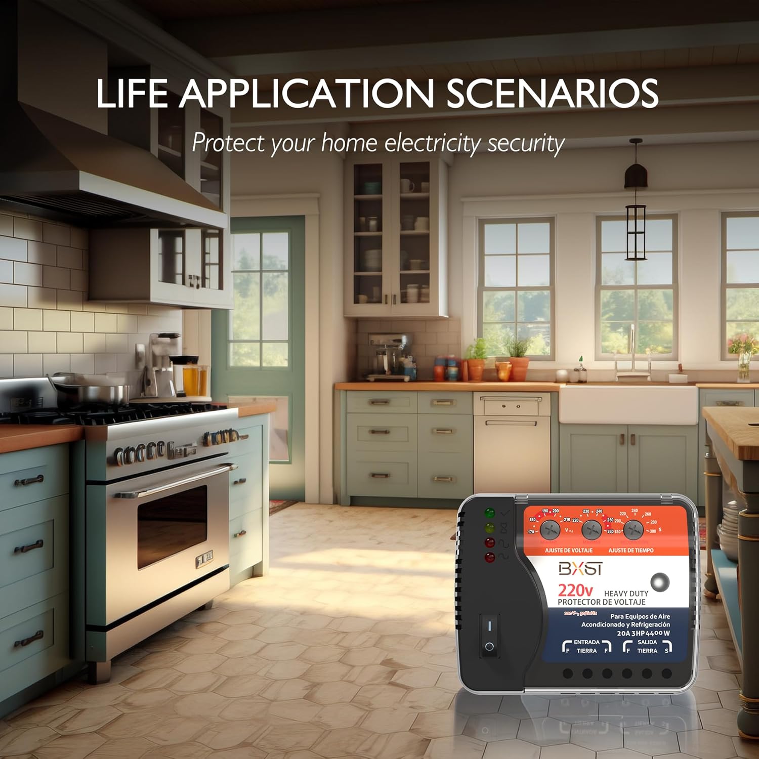 BXST Wiring Voltage and Brownout Surge Protector for Refrigerator TV 4400W Appliance AIR Conditioning Inverter Mini Split Adjustable Over/Under and Delay Time Voltage 20A 220V 140J