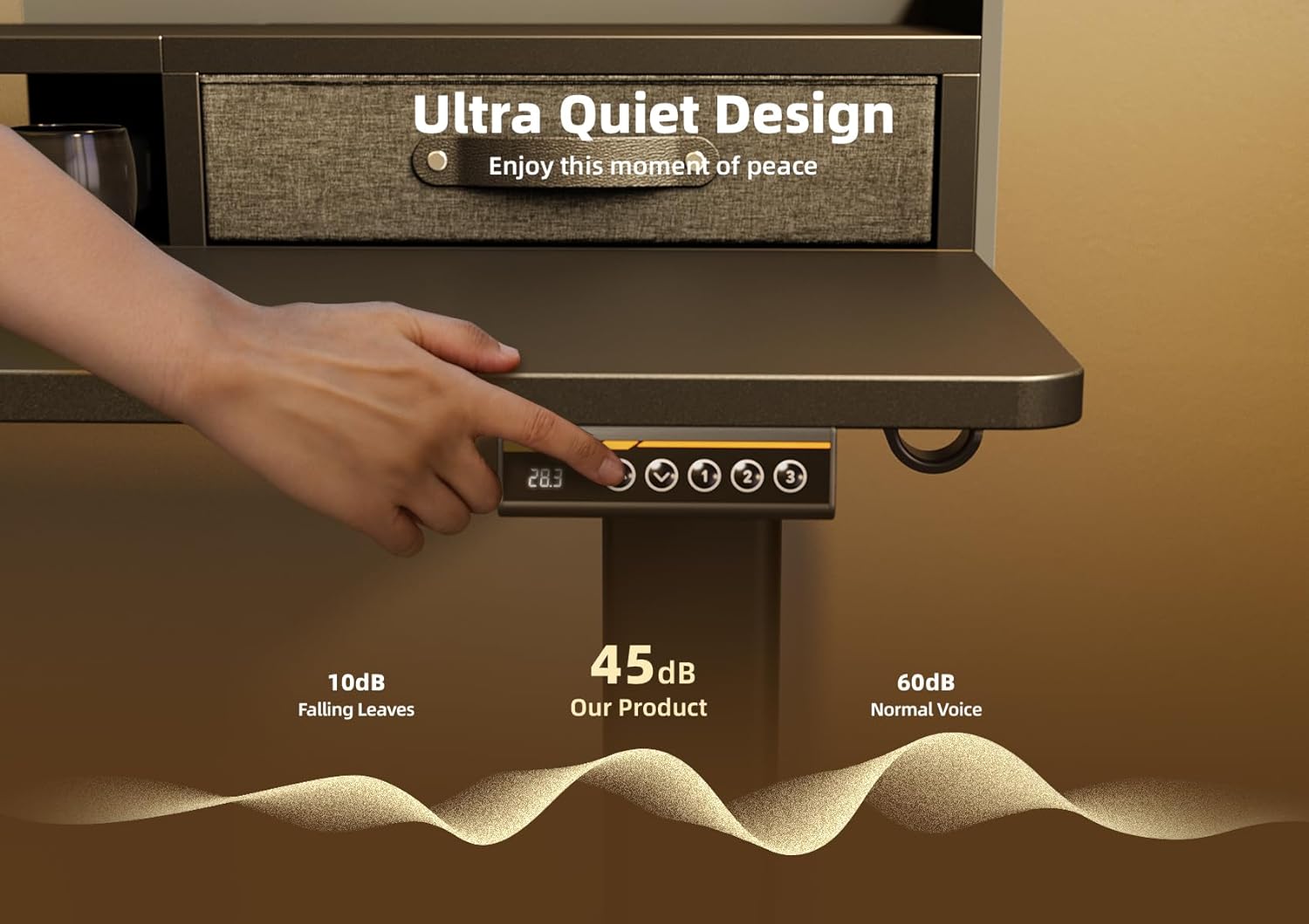 - Smooth Height Adjustment: Freely select adjustable standing desk height, from 28.35" to 46.46". Save your favorite three settings and smoothly switch the electric standing desk between them.
