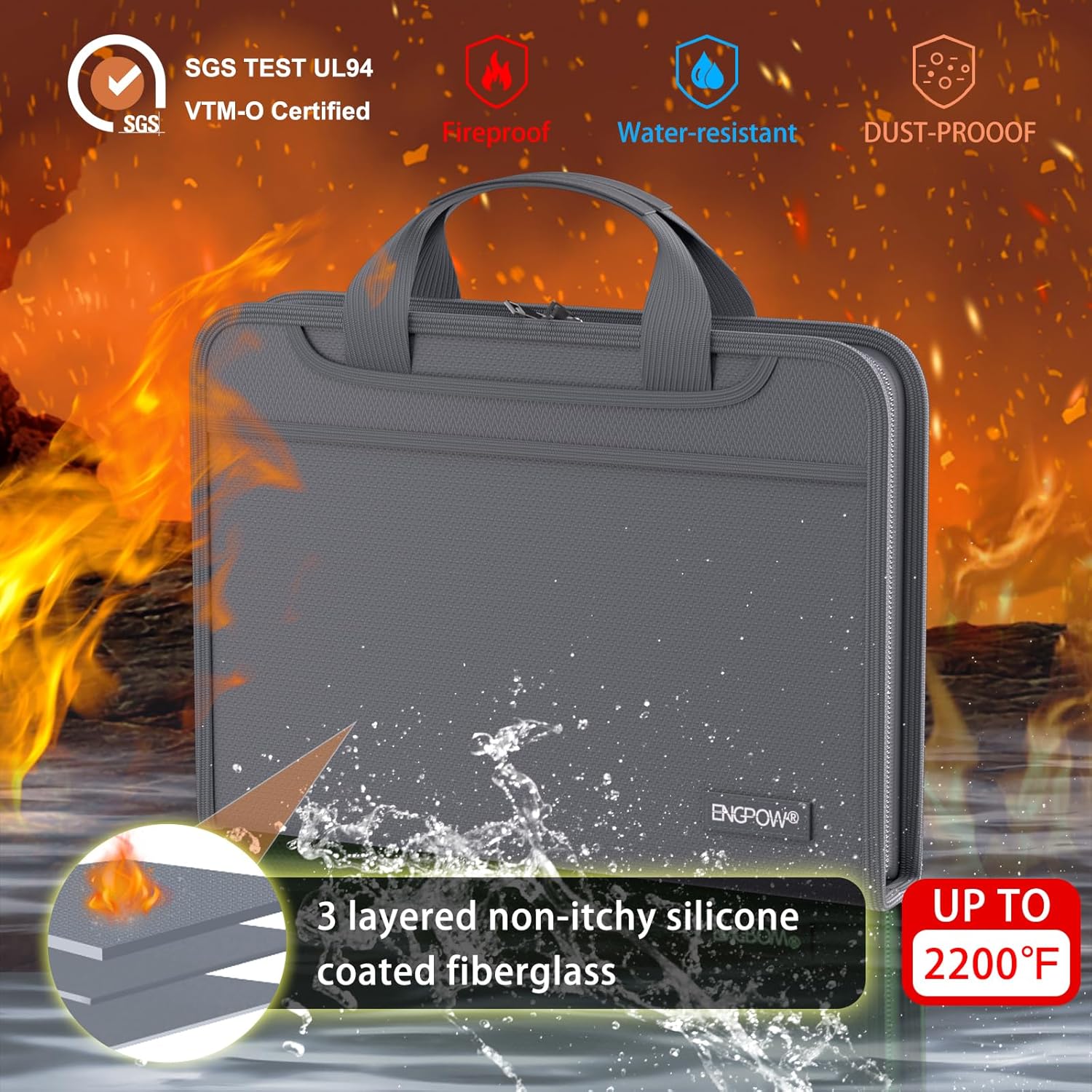 - High-Quality Materials: Protect your files with ENGPOW fireproof accordion file organizer.It is made of 3-layered non-itchy silicone-coated fiberglass which withstand the temperature up to 2200β.It has been passed by SGS TEST(UL94 VTM-0 Certified).Fireproof File Folder is fireproofοΌWater-resistant,which can effectively protect your important documents in a fire,flood,and wet weather. They will further keep your files intact.Giving you time to save your important documents when disaster strikes