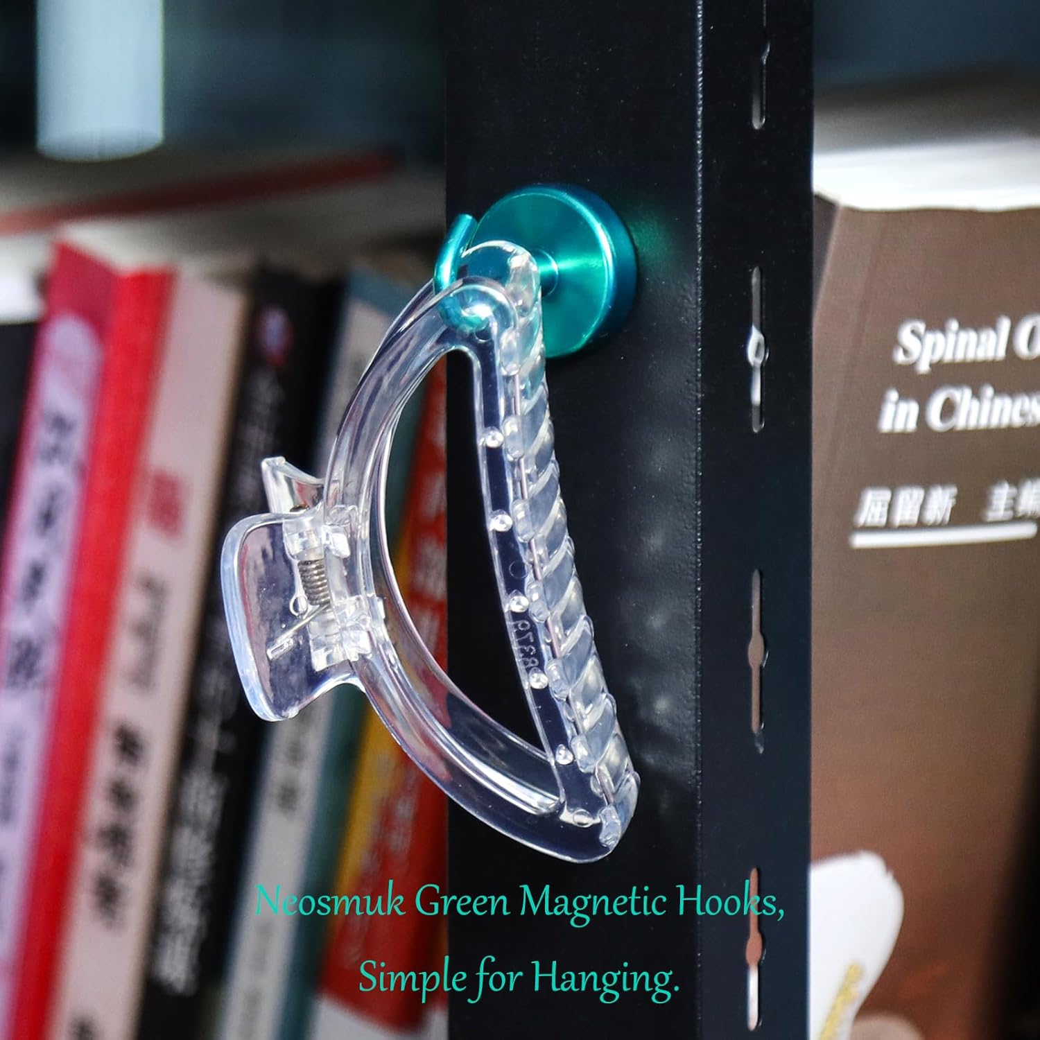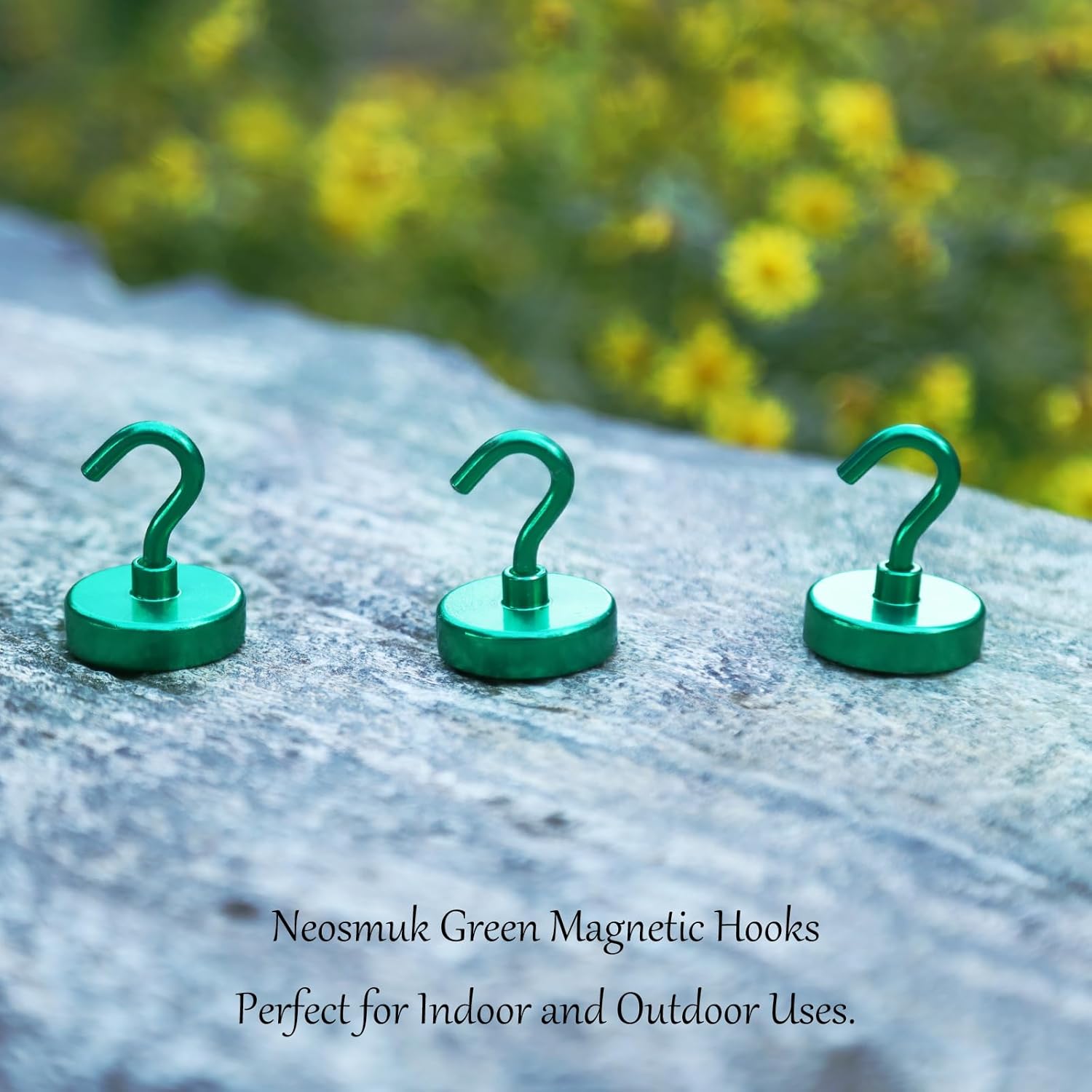 Neosmuk Magnetic Hooks Heavy Duty,Strong Magnet with Hook for Fridge, Super Neodymium Extra Strength Industrial Hooks for Hanging, Magnetic Hanger for Toolbox, Cruise, Grill(Green,4 Pack)