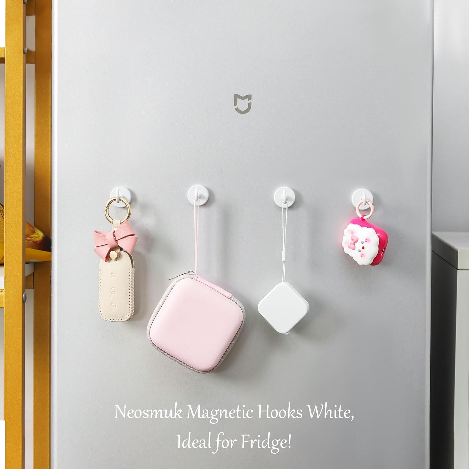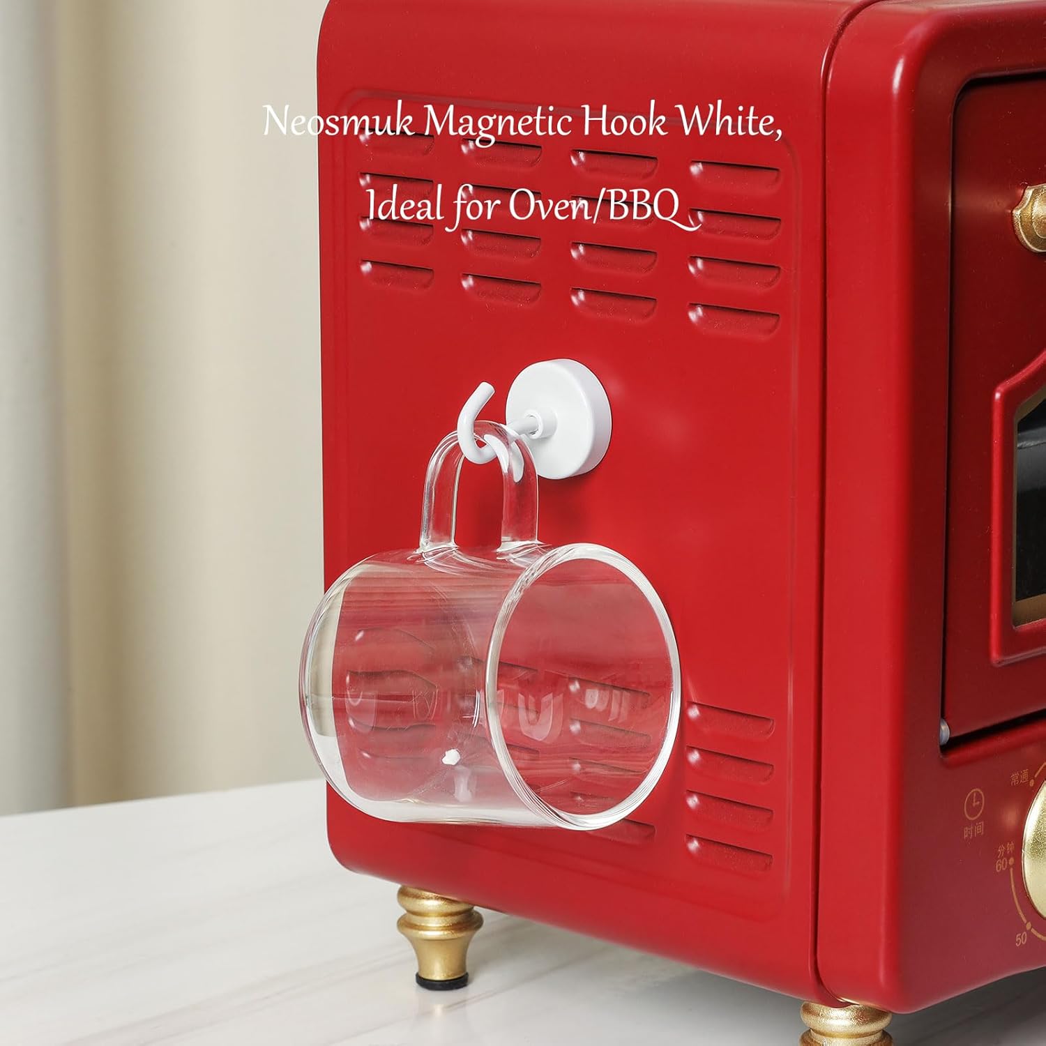 Neosmuk Magnetic Hooks Heavy Duty,Strong Magnet with Hook for Fridge, Super Neodymium Extra Strength Industrial Hooks for Hanging, Magnetic Hanger for Toolbox, Cruise, Grill(White,4 Pack)