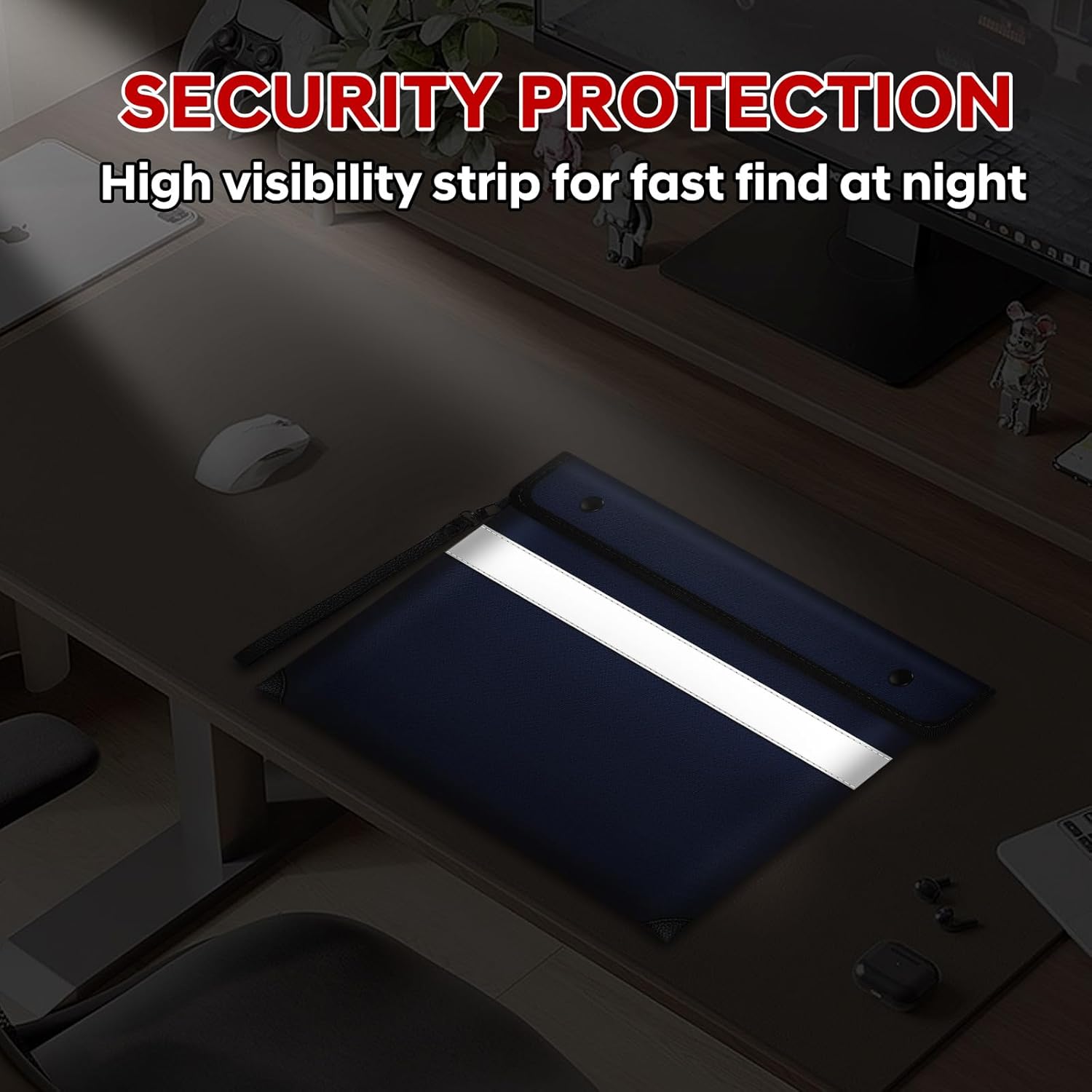 Fireproof Money Bag for Cash 11"x7.7",Upgraded 5200℉ Insulated Water Fire Proof Pouch with Water-resistant Zipper,Fireproof Envelopes for Important Documents,Valuables (Blue)