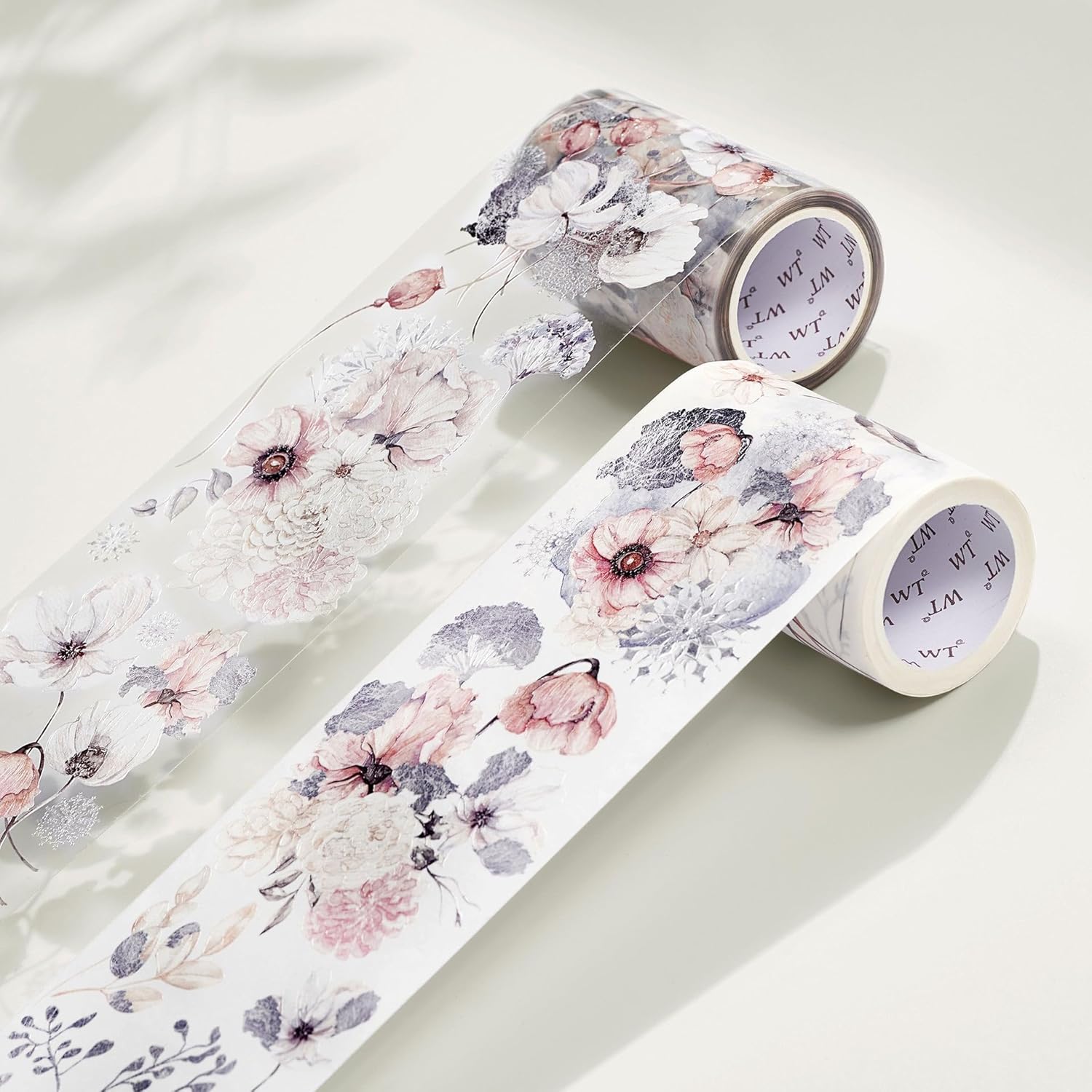 WT Frostbloom Wide Washi Tape, Single Roll, Original Design, Pastel Pink Floral Design, Decorative Masking Tape for Arts, DIY Crafts, Journals, Planners, Scrapbooks