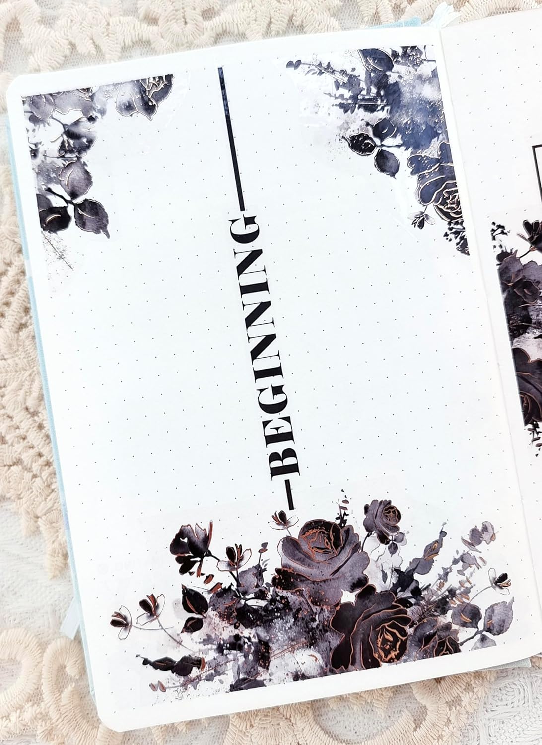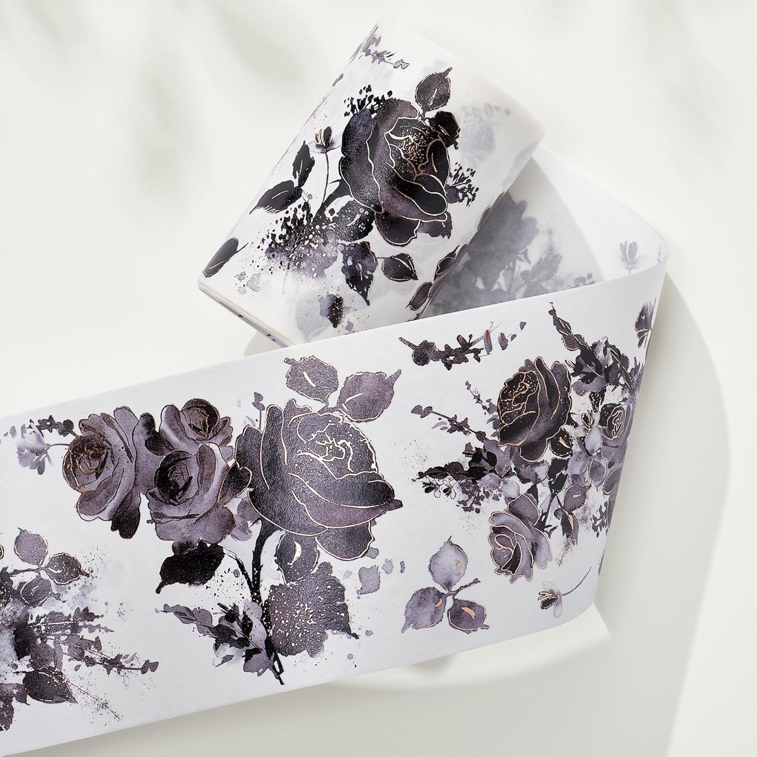 WT Rose Noir Wide Washi Tape Gilded, Single Roll, Original Designs, Black Flower Gold Foil Decors, Journal Scrapbook Bujo Planner DIY Crafts Supplies Gifts, Vintage Floral Adhesive Tape