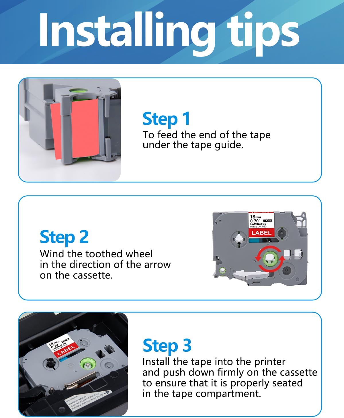 - Compatibility: The 18mm label tape is compatible with a wide range of Brother label printer, including the P-touch Cube Plus, PT-D600, PT-D610BT, PT-P900W, PT-P950NW, PTD600VP, PT-E550WVP, PT-P750W, PT-P800W and more