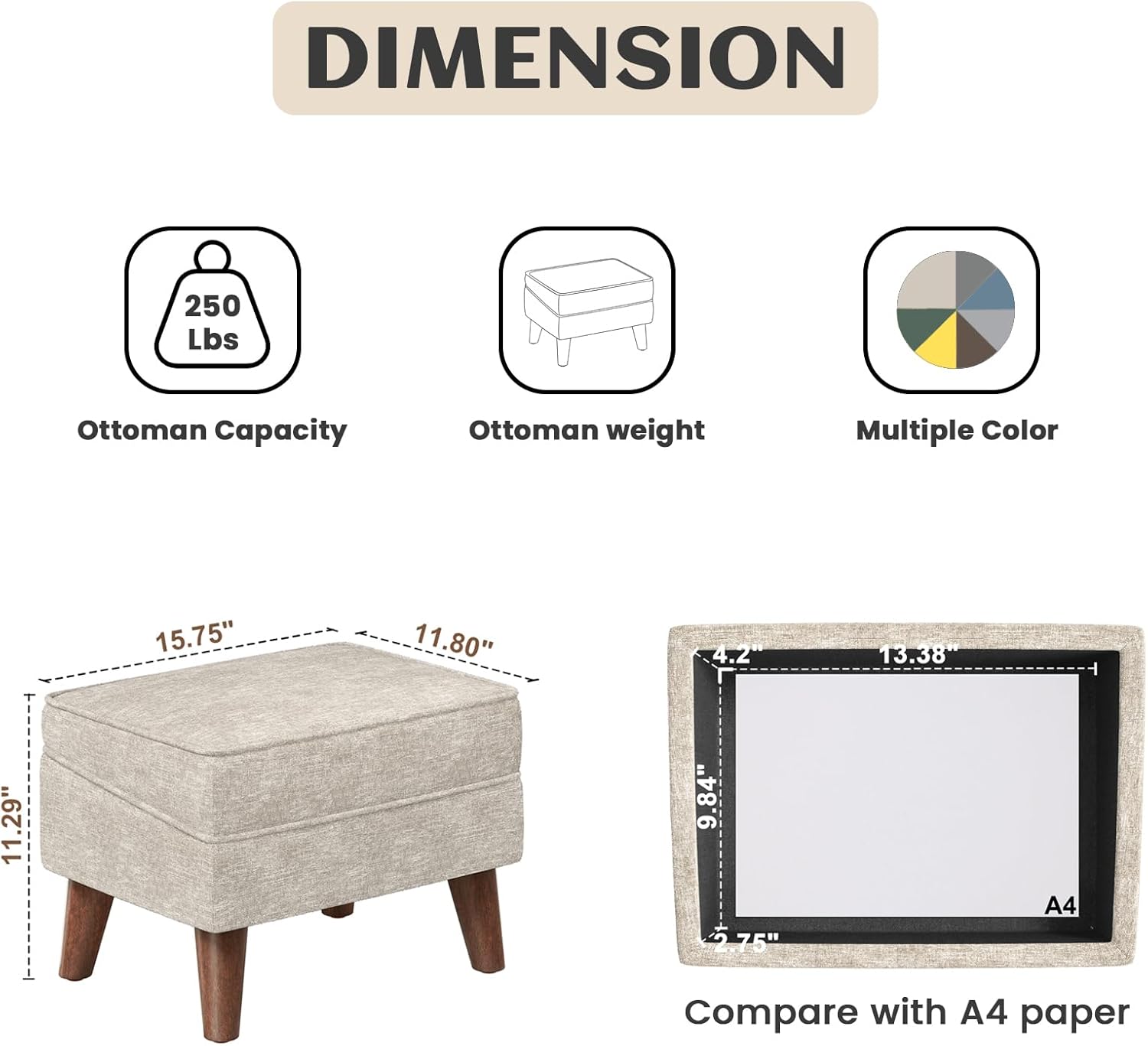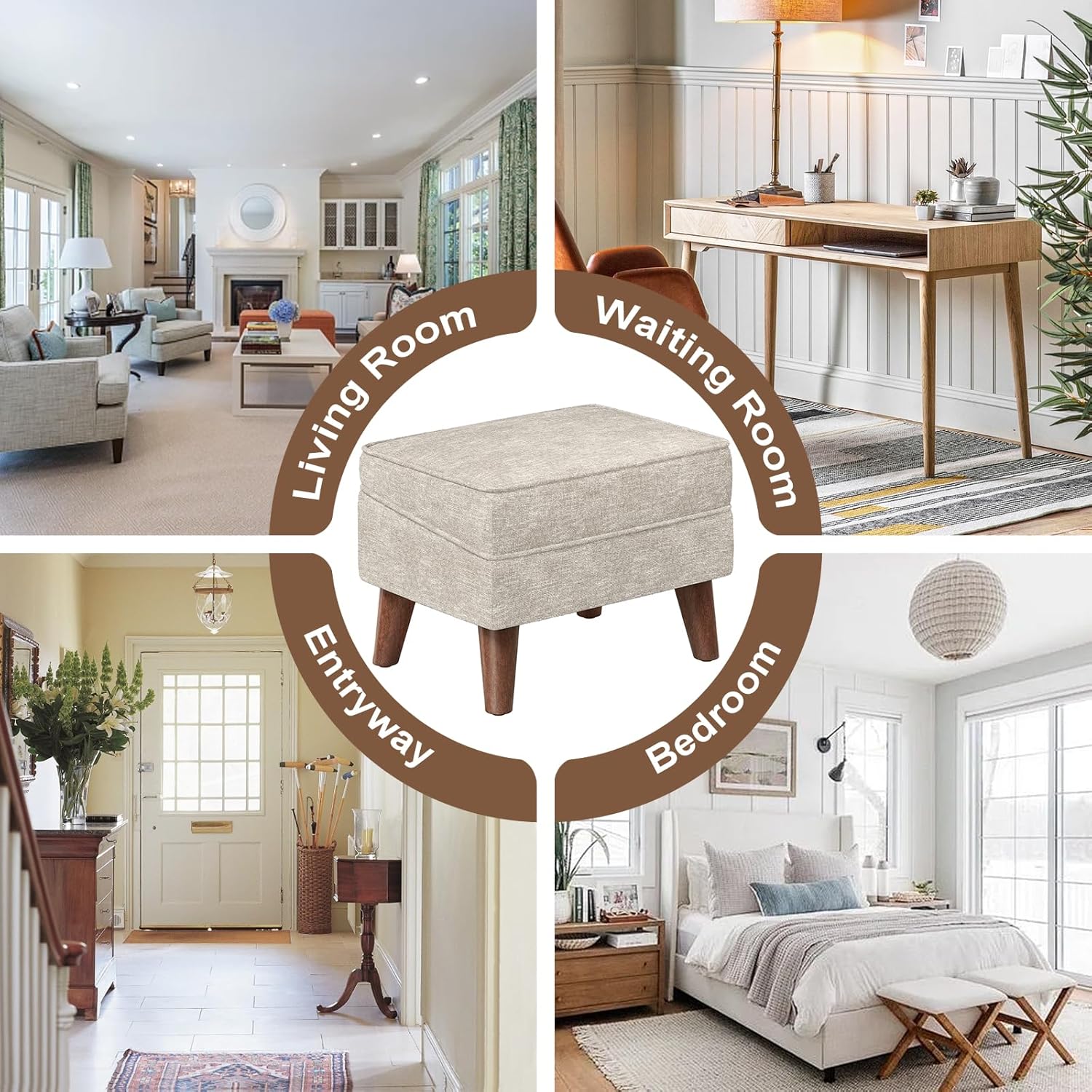 - γDecorative Ottoman for Occasionsγ High resilience foam wrapped in textured natural linen, modern style and simple appearance has a touch of casual. Wood legs with foot pads is quiet when moving, and can avoid leaving scratches on floor. Foot stool choices strive to stand out in any various occasion, such as bedroom, living room, study, lounge, balcony, dorm, entryway, hallway, etc.