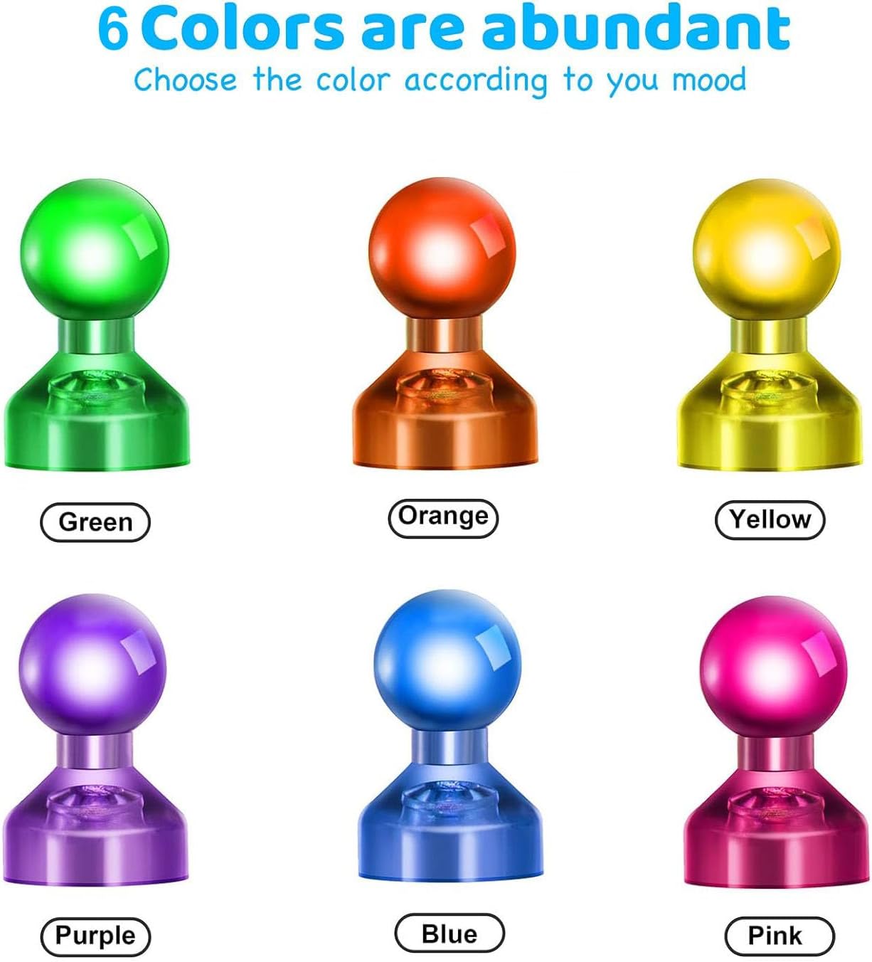 - 6 ASSORTED COLOR: 60 pack little decorative magnets, includes 10 blue magnets, 10 orange magnets,10 yellow magnets, 10 green magnets, 10 purple magnets, 10 pink magnets. Perfect for organize, color code and Christmas decoration. Kids will love them!