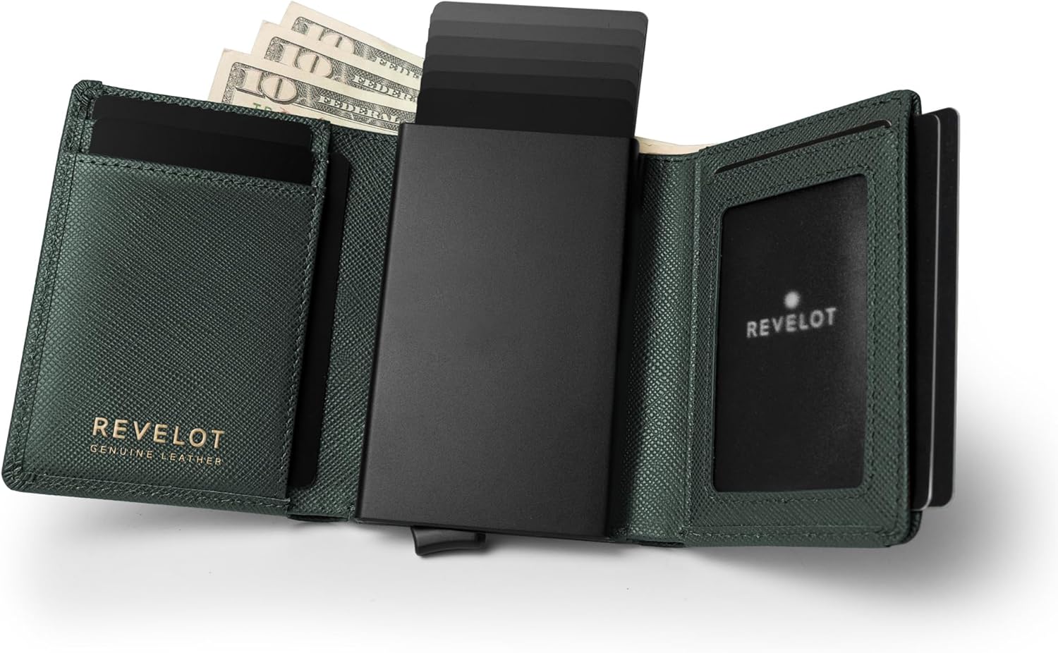 Trifold Genuine Leather Wallet/Smart Card Holder / W5 (Green Saffiano)