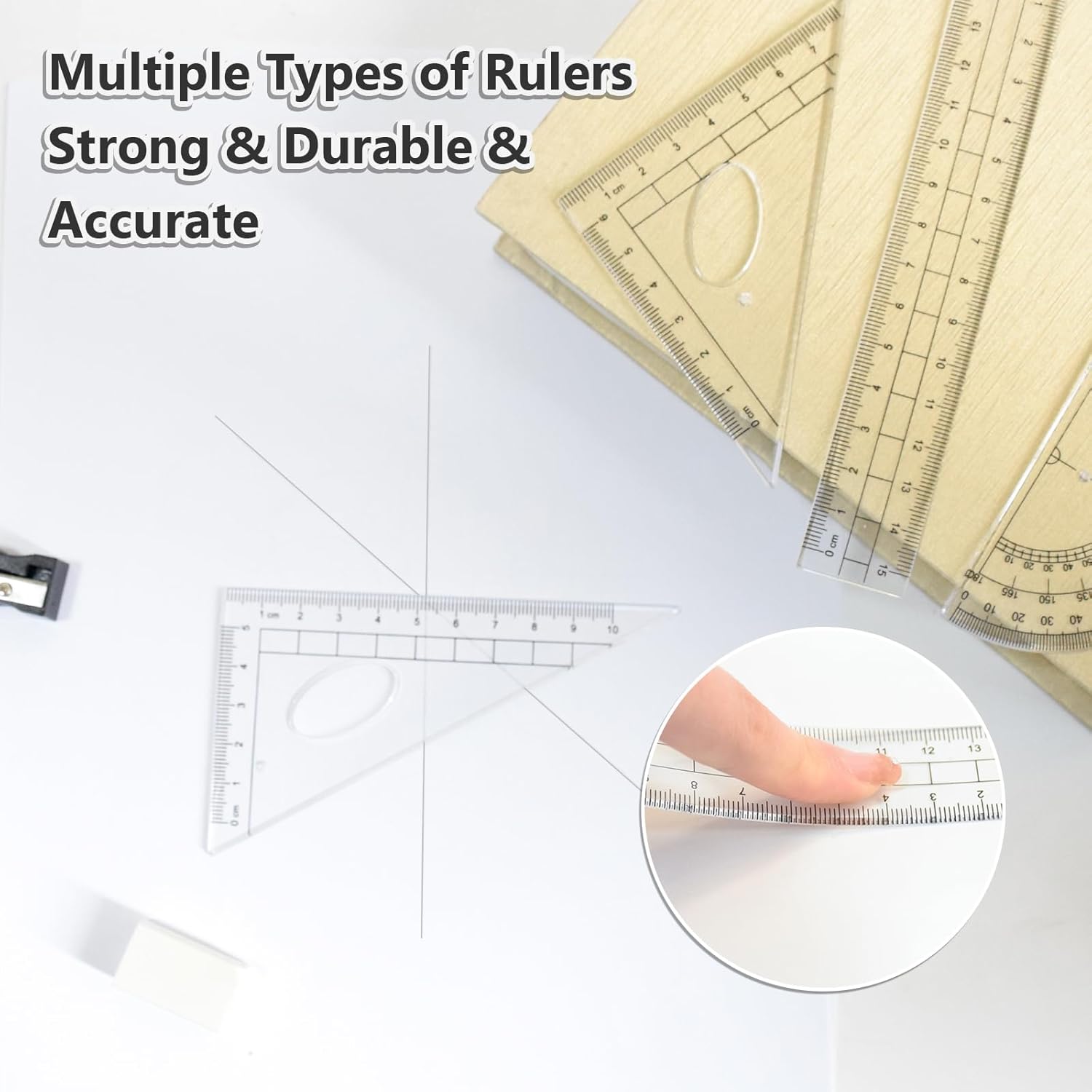 - UNIVERSAL: There are 2 compasses, one can hold different pencils and pens, the other one uses replace lead.Choose one you need.What's more,the rule has two scale interval, inches and cm
