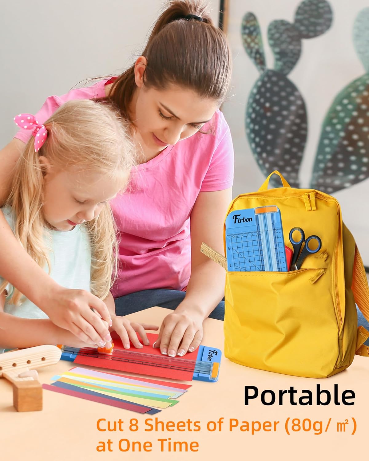 Firbon Blue A5 Paper Cutter, Straight Small Paper Trimmer with Side Ruler for Scrapbooking Craft, Paper, Coupon, Label, Cardstock