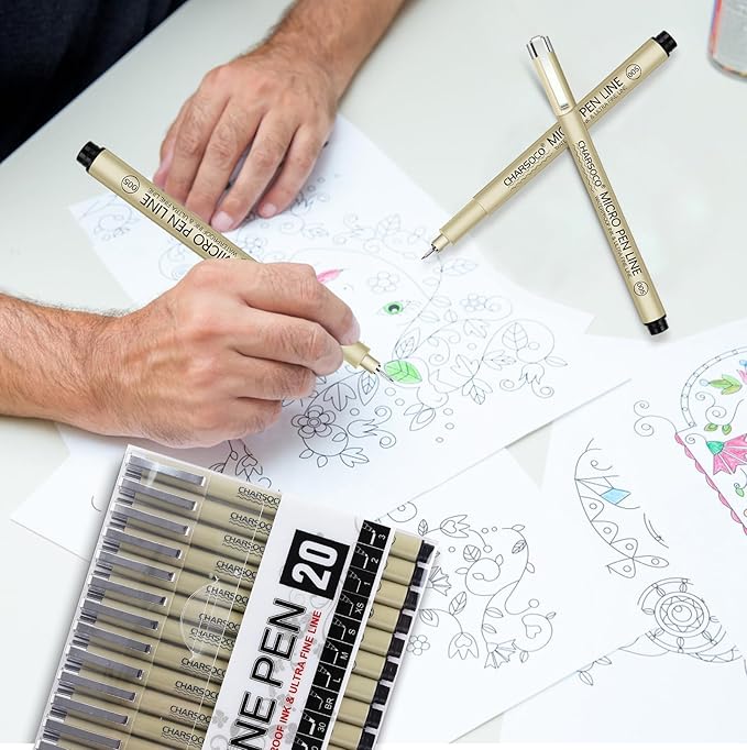 - 【Multi-Size Micro Pens】Elevate your creativity with our 20 Pack Micro Pens - a set that combines artistic variety and fine-point precision. With 20 sizes ranging from 0.15mm to 5mm, these pens are perfect for a wide range of creative tasks, including sketching, note-taking, hand lettering, artist illustration, and more. Dive into the world of artistic expression with these versatile micro pens featuring waterproof archival ink.