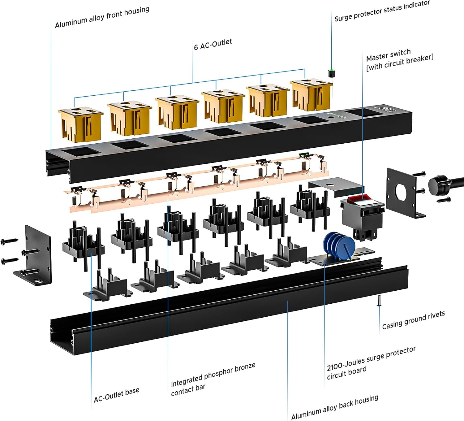 - [Versatility] - Makes it an ideal choice for a wide range of settings, including homes, garages, and workshops. Whether you're working on a DIY project in your garage, or running power tools and machinery in your workshop, this metal power strip can handle it all.