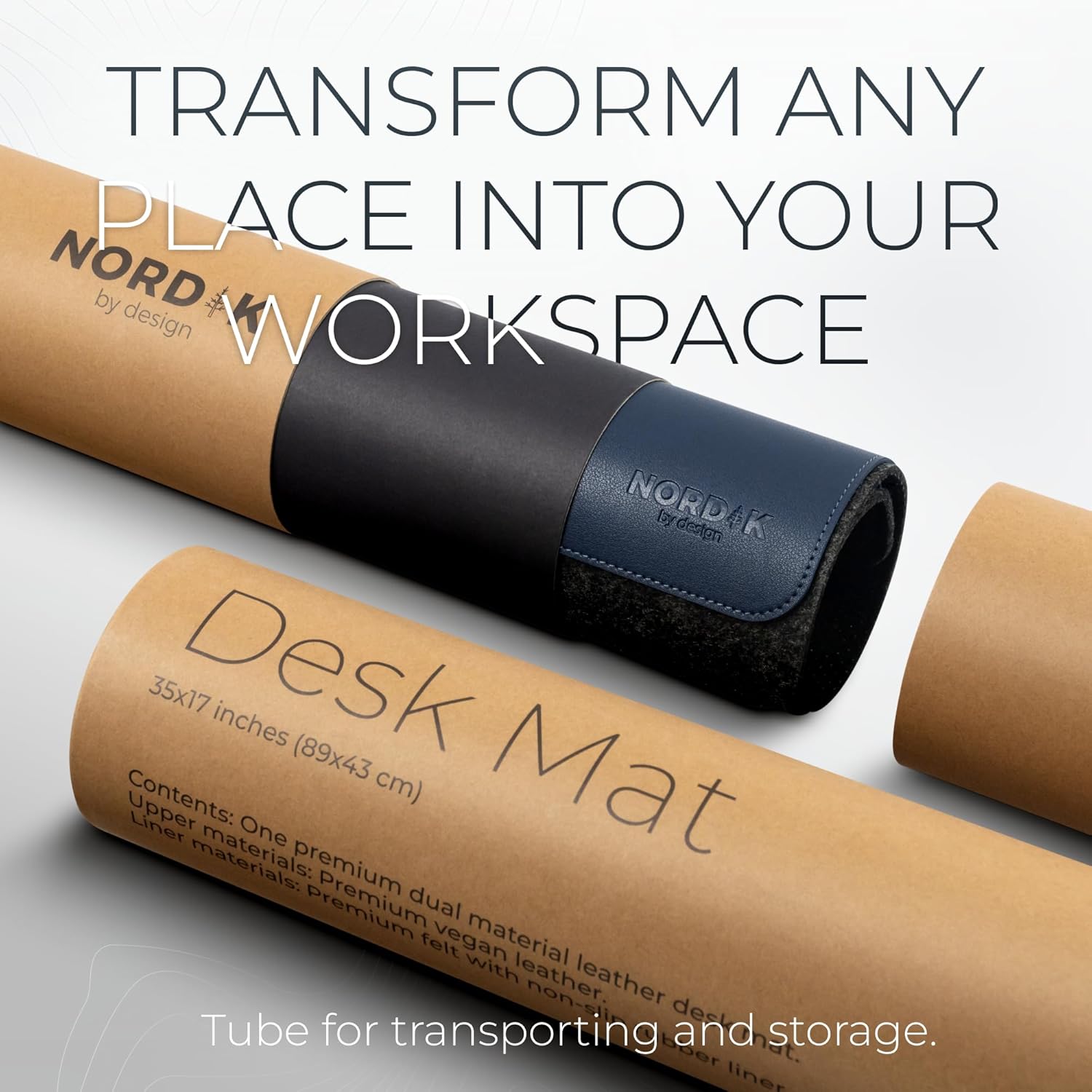 Nordik Felt and Leather Desk Mat Non-Slip - Blue - 35 X 17 Inch - Felt and Vegan Leather Desk Pad - Document Organizers - Desk Blotter and Desktop Mat - Desk Protector Laptop Desk Matt for Desktop