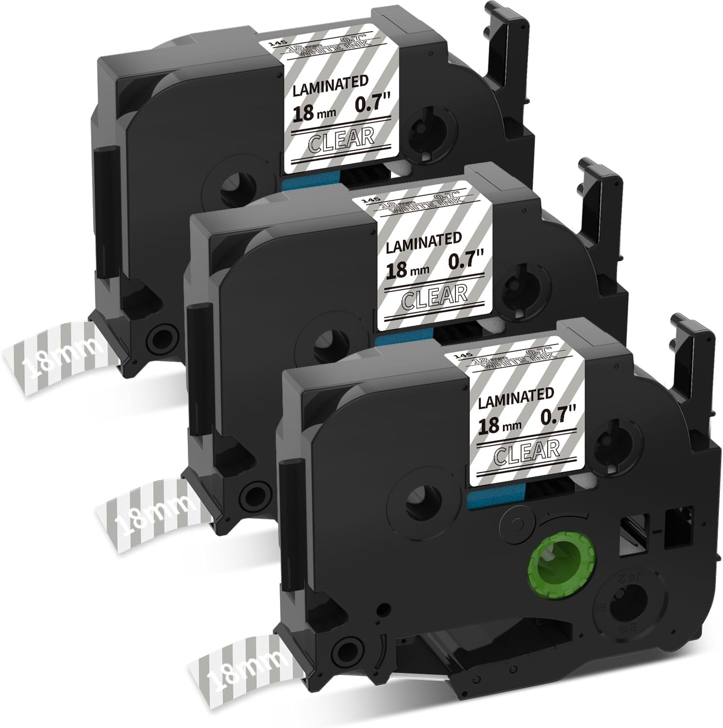 TZe-145 18mm TZe TZ Tape White on Clear Label Tape Replacement for Brother P Touch Labe Maker Refills Clear Laminated Work with PTD400AD PTD400 PTD600 PT1880 PT2730 Label Maker - 3-Pack