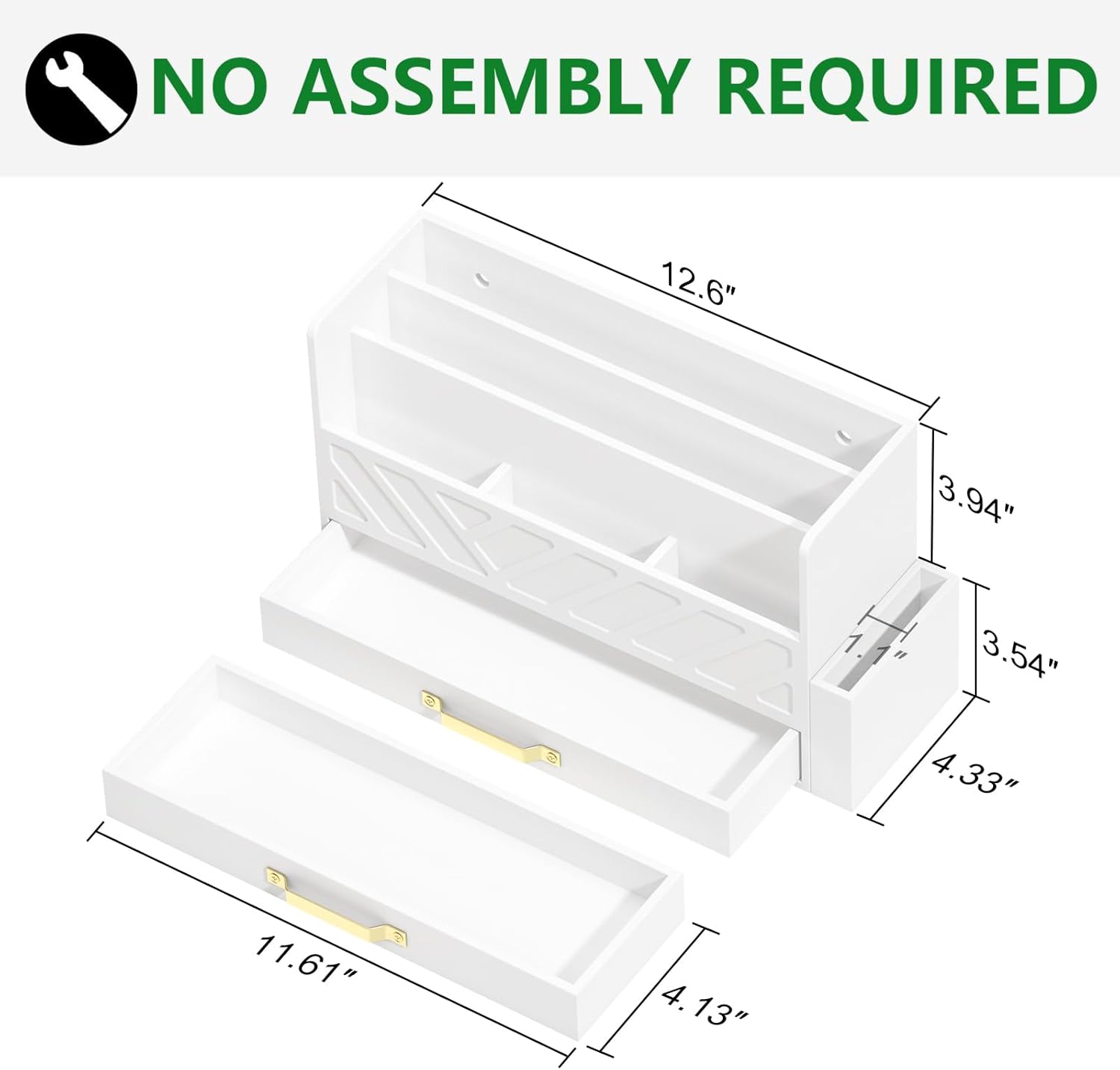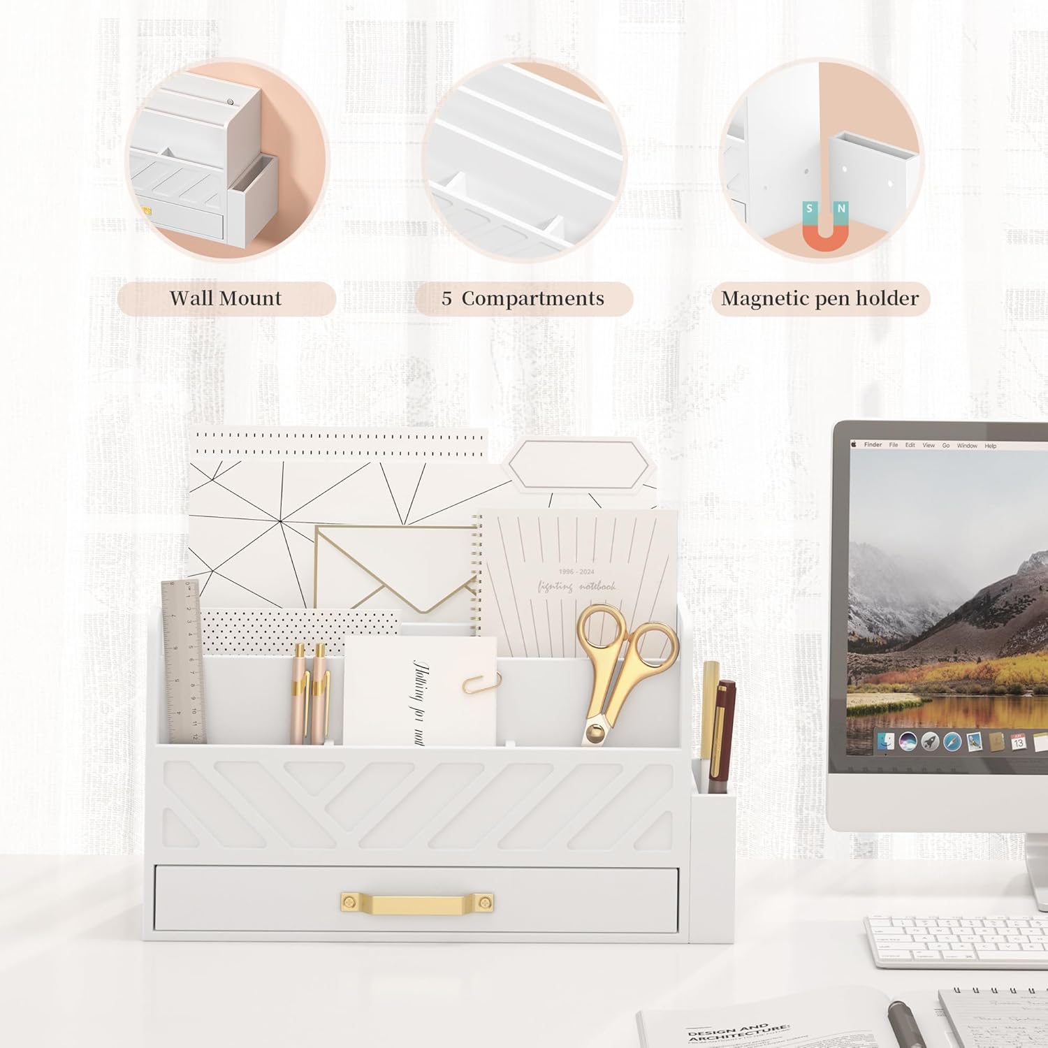 - Stylish office desk organizer: Upgrade your workspace with this stylish desk organizer, enhanced with gold mental drawers perfect for desk organization and file storage, With its sleek design for all your desk accessories, this desktop organizer is not only functional but also adds a touch of sophistication to any home office or work desk.