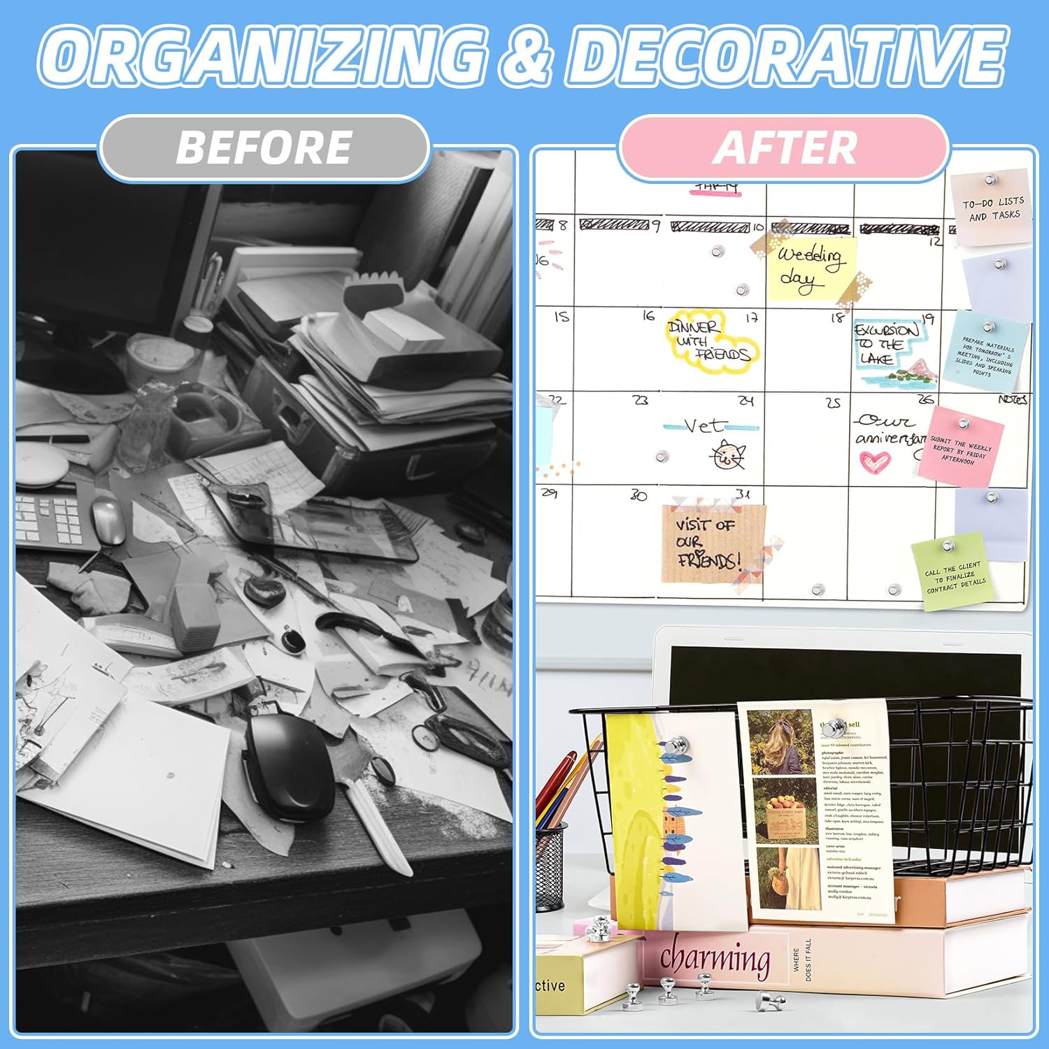 - Versatile Use: These small strong magnets are perfect for keeping your kitchen, office, or classroom organized. Use these magnetic push pins on magnetic surfaces like whiteboards, refrigerators, lockers, and bulletin boards to display notes, photos, calendars, greeting cards, recipes, schedules, artwork, or memos. Theyβre also ideal for practical uses like hanging jewelry, keys, utensils, or small tools, making them a must-have for both creative and functional spaces.
