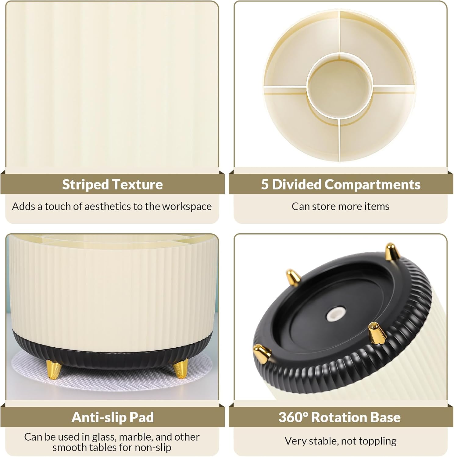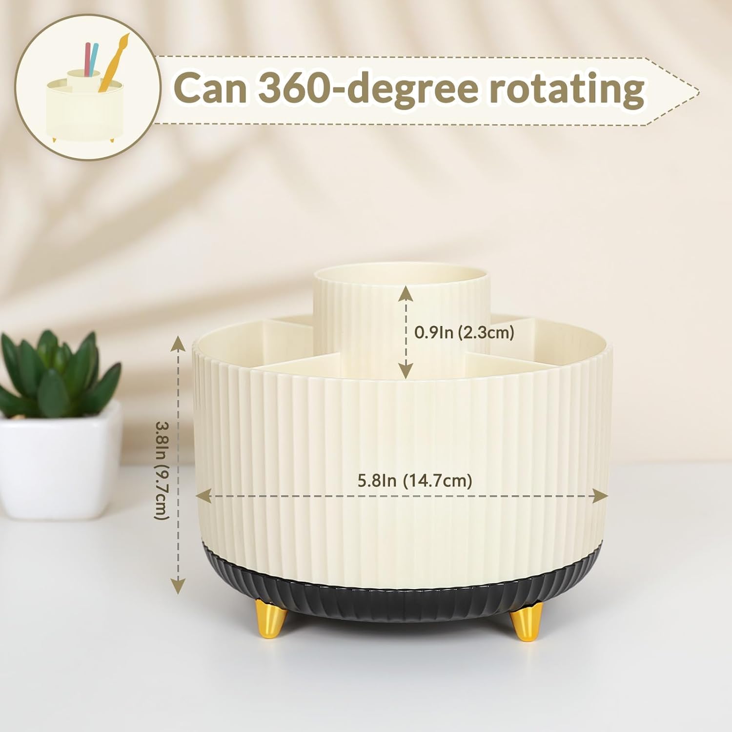 SKYDUE 360 Rotating Organizer, Dual-Purpose Pencil Pen Holder, 5-Slot Rotating Pencil Cup for Office, School, Home (Beige-Black)