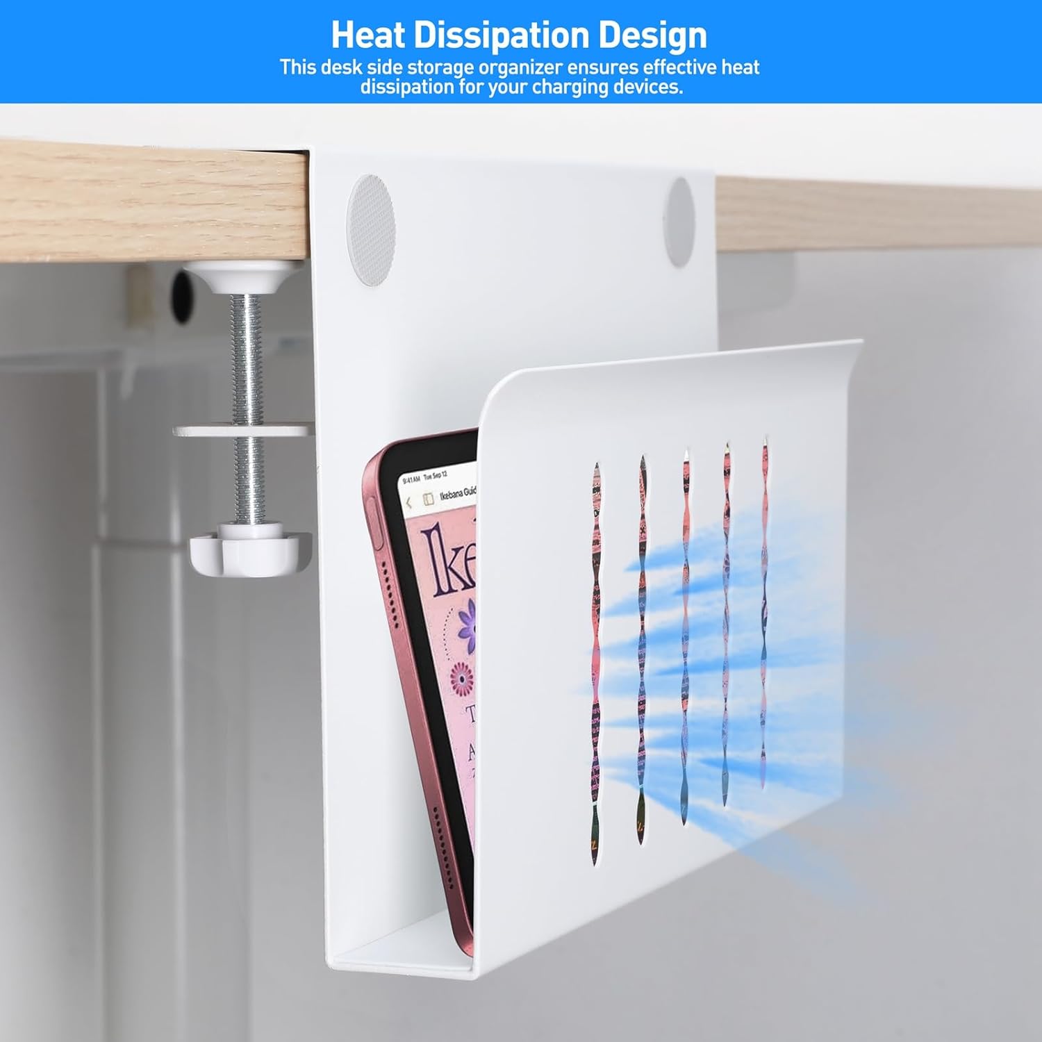 - γClamp Under Desk Storage & No Drill DesignγOur clamp on side desk storage requires no drilling or tools. The rubber cushion prevents scratches on desks and other objects, and the rounded corners design also helps avoid scratches.