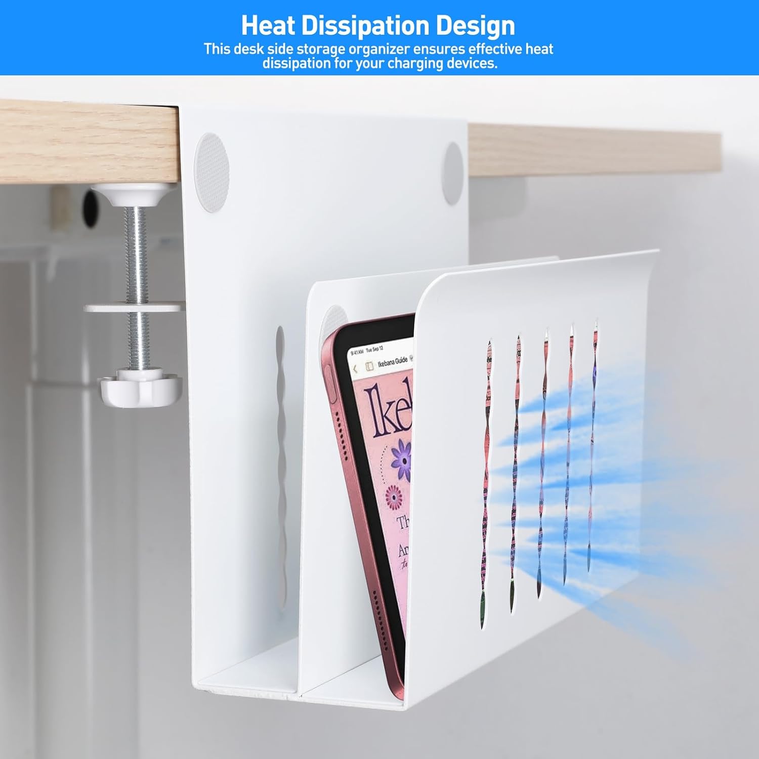 - γHigh Quality MaterialγThis metal side hanging desk organizer is crafted from high quality iron. This sturdy under-desk laptop holder supports up to 22lbs and can be paired with magnetic cable holders, USB hubs, and other devices.