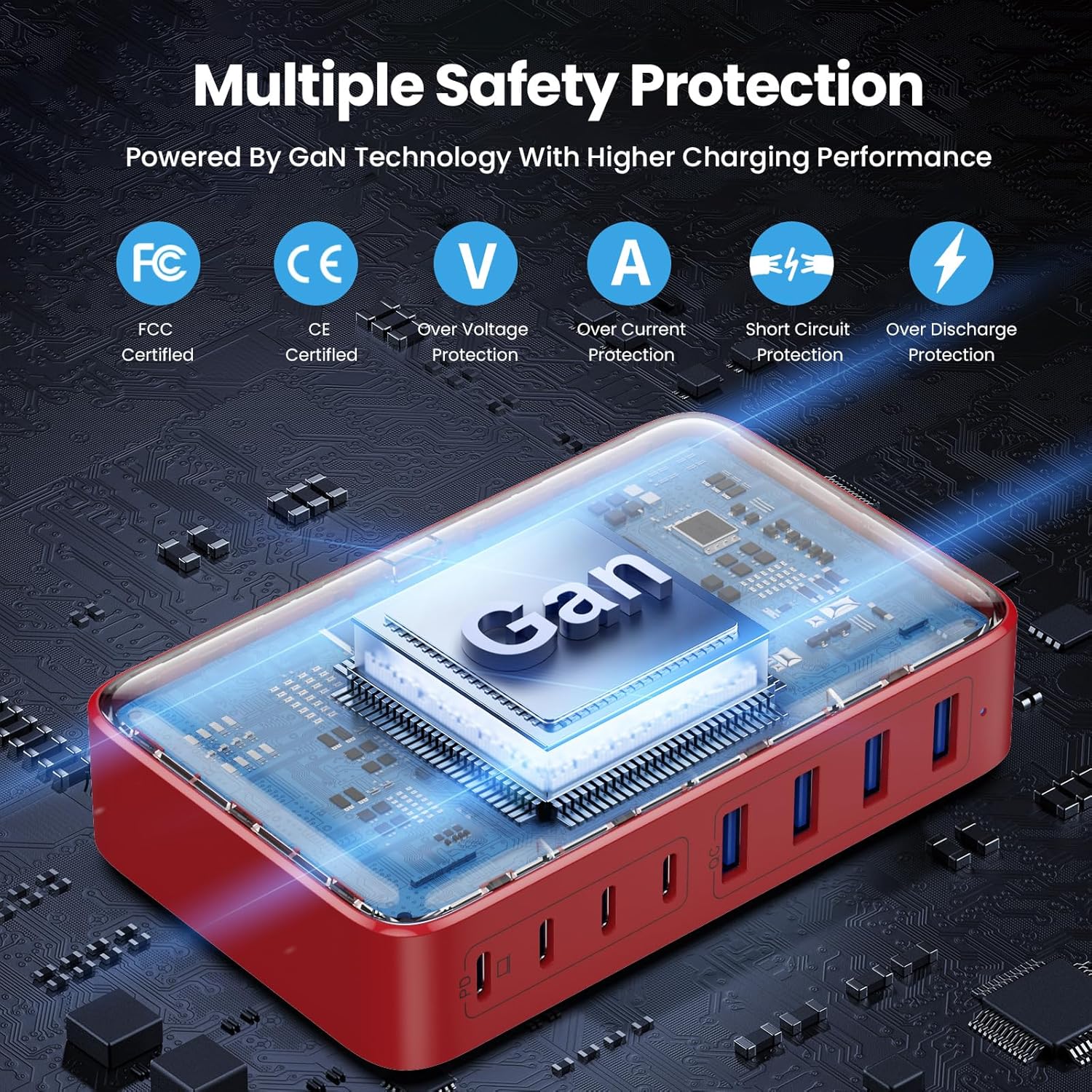- γLatest GAN III Chip Technology Charger StationγThe USB C charger adapted GaN III generation chip technology, built-in multi-protection system and premium microchips. With higher energy efficiency, higher resistance to radiation and upgraded heat dissipation, Gallium Nitride (GaN) makes our chargers smaller and safer without sacrificing a drop of power. Trustworthy Charging Station with 3 Years Warranty!