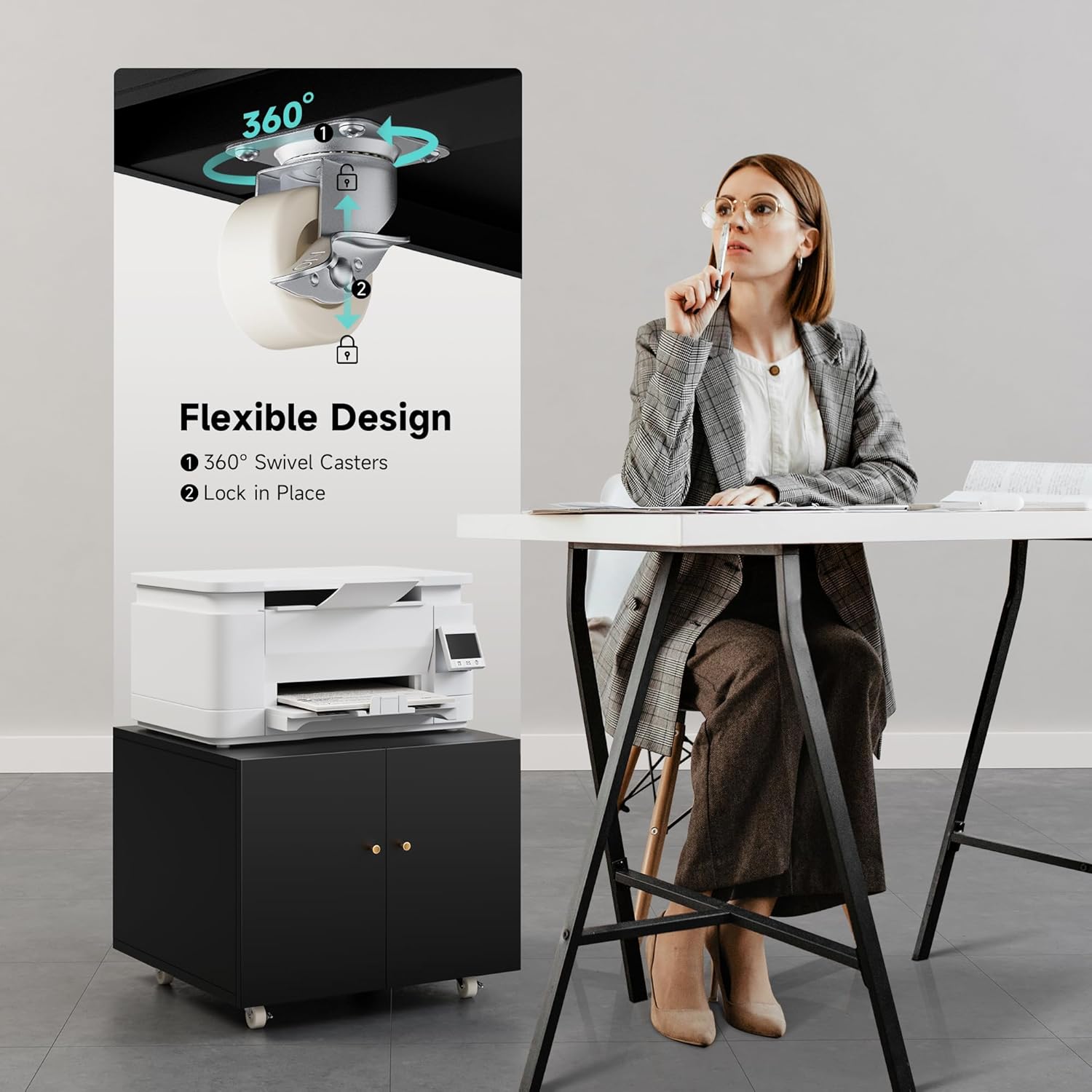 - 【Large Storage Space】 The mobile printer stand with storage has an enough space on top for the printer. The printer cart under desk has an adjustable shelf layer inside, which can be adjusted according to your needs to place copy paper, folders, books, letters, documents, etc. It is an ideal homes office printer table.