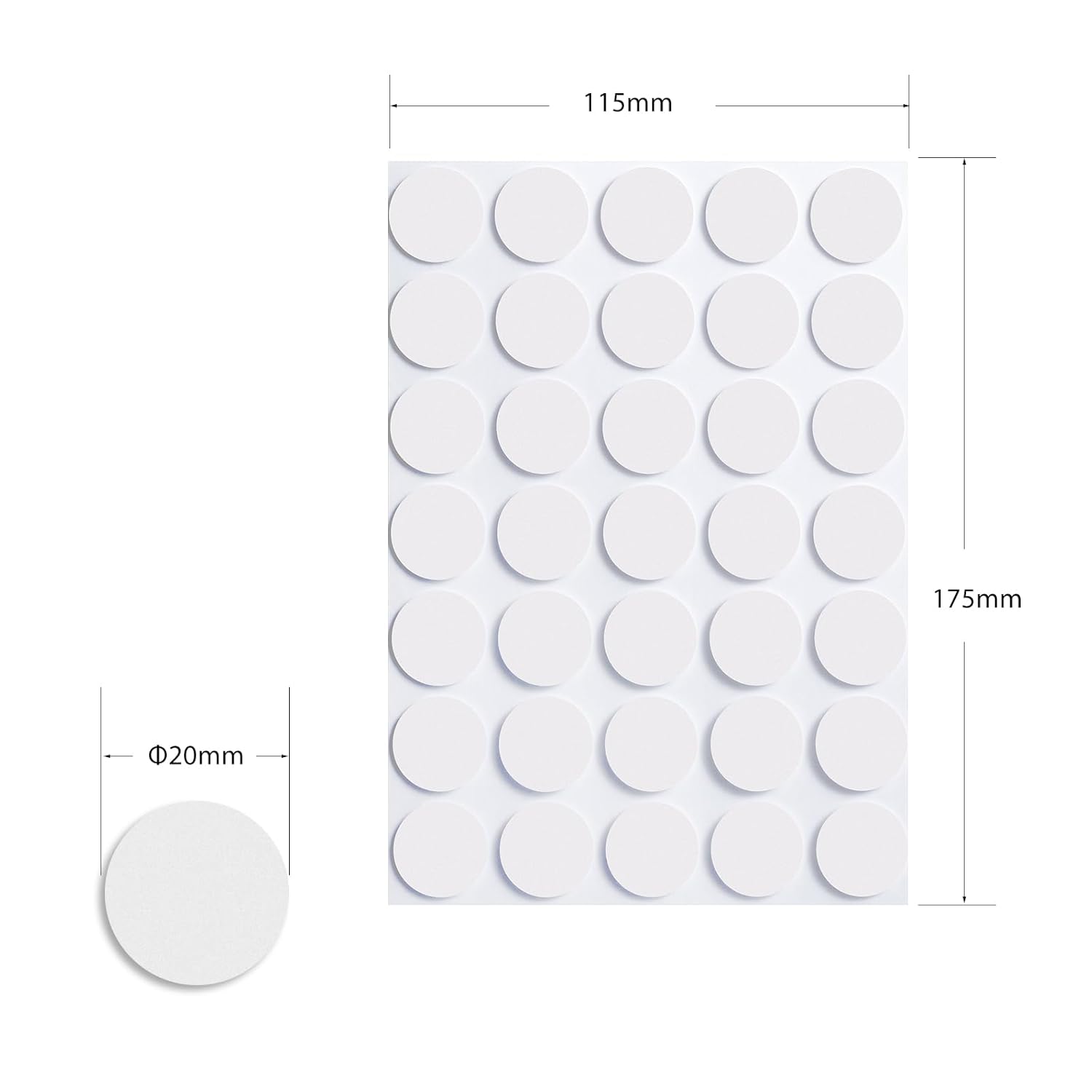 - What you get: 350 pieces of double sided clear adhesive dots with protective lining. Size: 20mm/0.79 inches in diameter, 1mm/0.04 inches thick. 24-month hassle-free warranty.